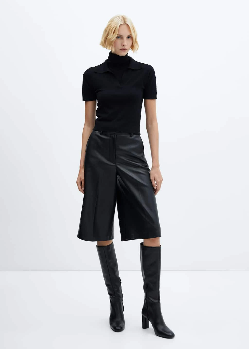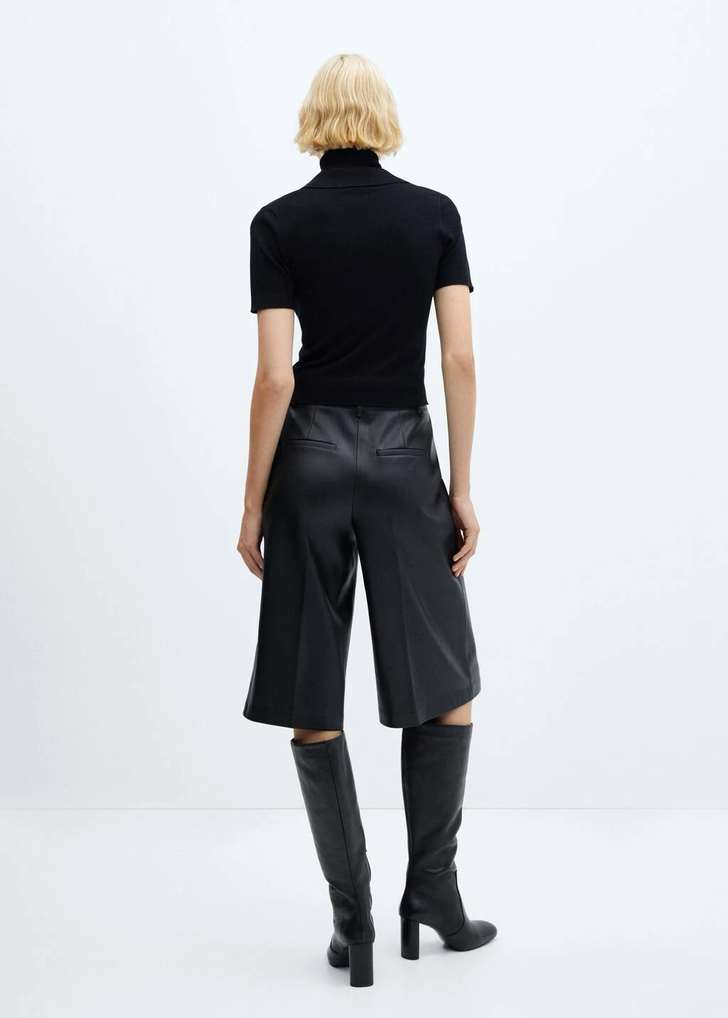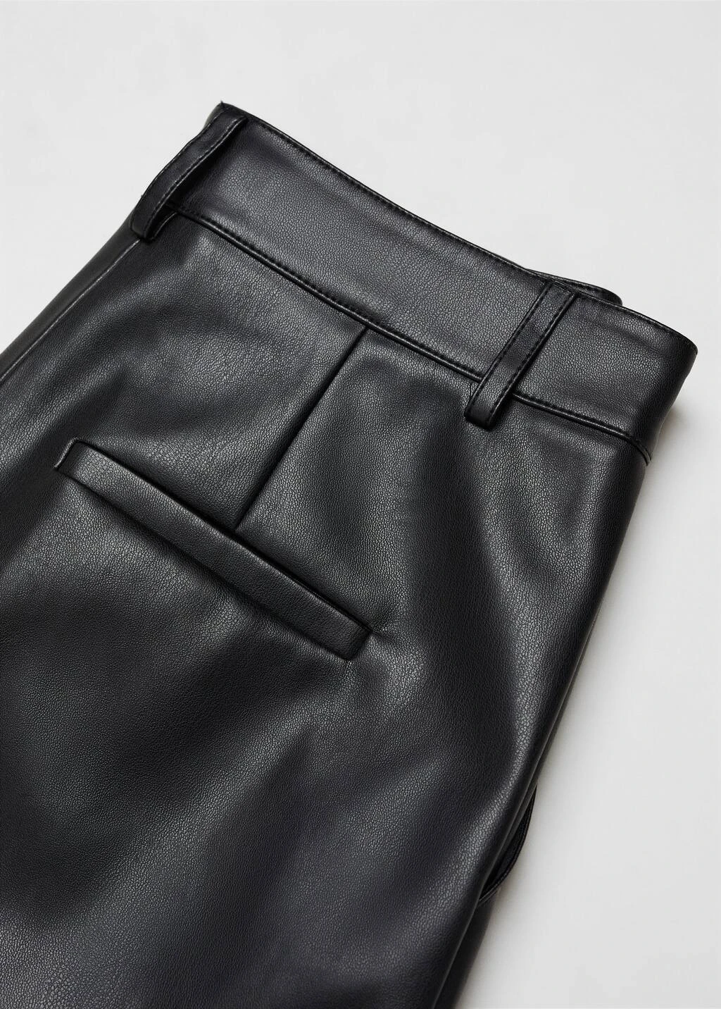 tissu fluide, coupe midi, coupe droite, similicuir, deux poches laterales, deux poches passepoilees a l’arriere, fermeture eclair avec crochet, passants de ceinture , detail plisse, doublureComposition: 100% polyester. Revêtement: 100% polyurethane. Doublure poches: 100% polyester