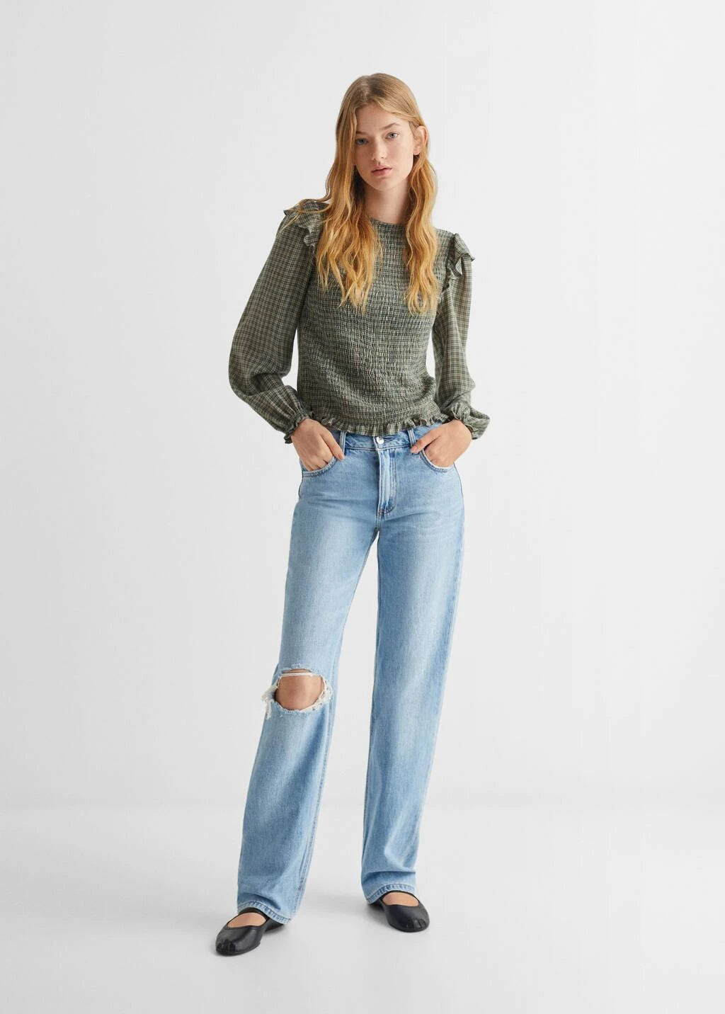 Blouse à Carreaux à Volant