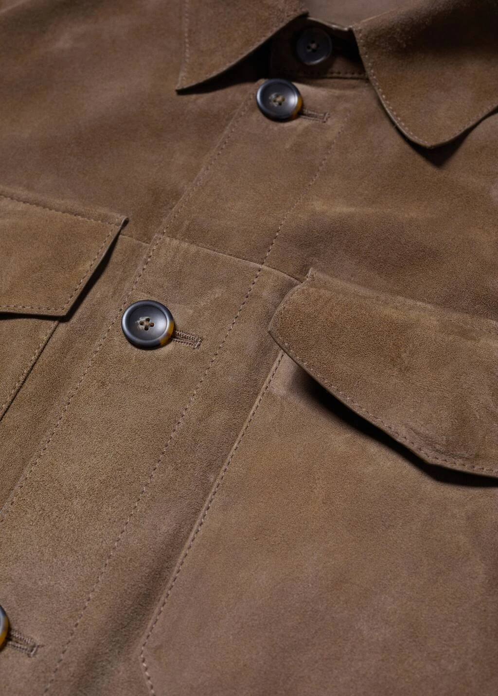 100 % daim, surpiqures decoratives, col classique, fermeture boutonnee sur le devant, manches longues boutonnees, deux poches a rabat sur la poitrine, deux poches laterales, sans doublure interieure, deux poches interieures, le mannequin mesure 190 cm et porte une taille m, campagne antoine griezmann, le cuir est un materiau delicat qui developpe naturellement une patine dont il faut prendre soin. pour conserver vos produits en cuir en bon etat, nous vous conseillons de les tenir a l’ecart de la poussiere et de les nettoyer si necessaire avec un chiffon doux en effectuant des mouvements circulaires.Composition: 100% cuir de chevre. Doublure poches: 100% coton