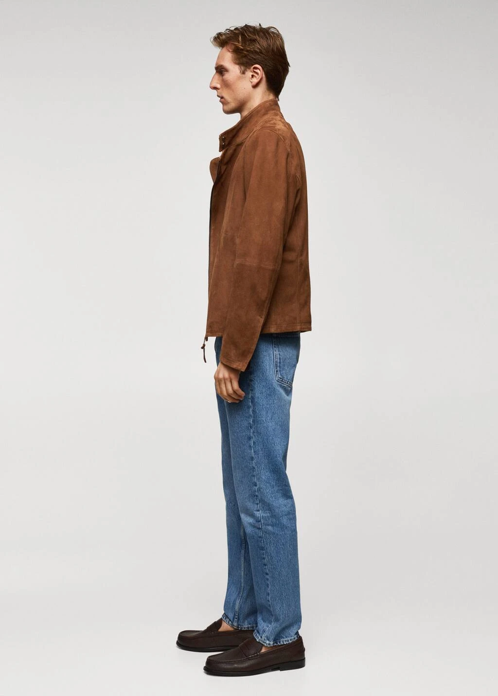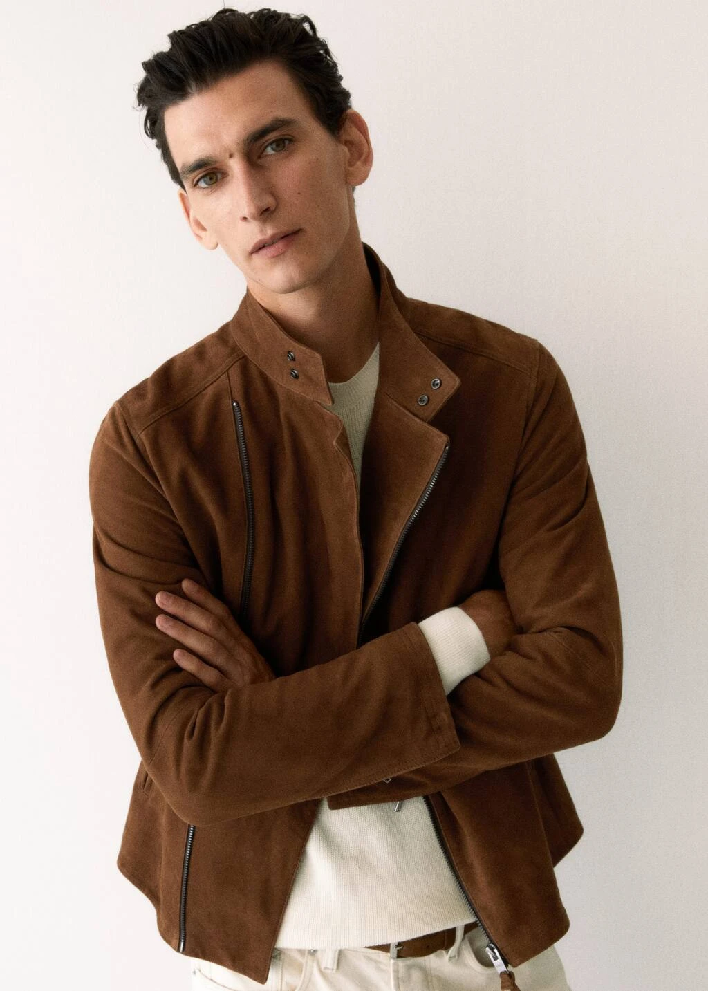 100 % daim, slim-fit, coupe courte, col cheminee boutonne, fermeture eclair asymetrique , deux poches passepoilees a fermeture eclair a l’avant , bas droit, doublure, poche interieure zippee, le mannequin mesure 190 cm et porte une taille mComposition: 100% cuir de chevre. Doublure: 55% polyester,45% coton. Doublure manches: 55% polyester,45% coton. Doublure poches: 100% coton