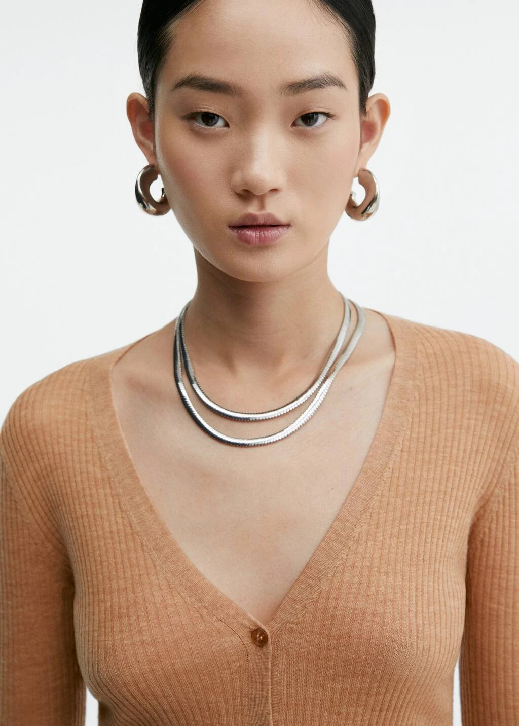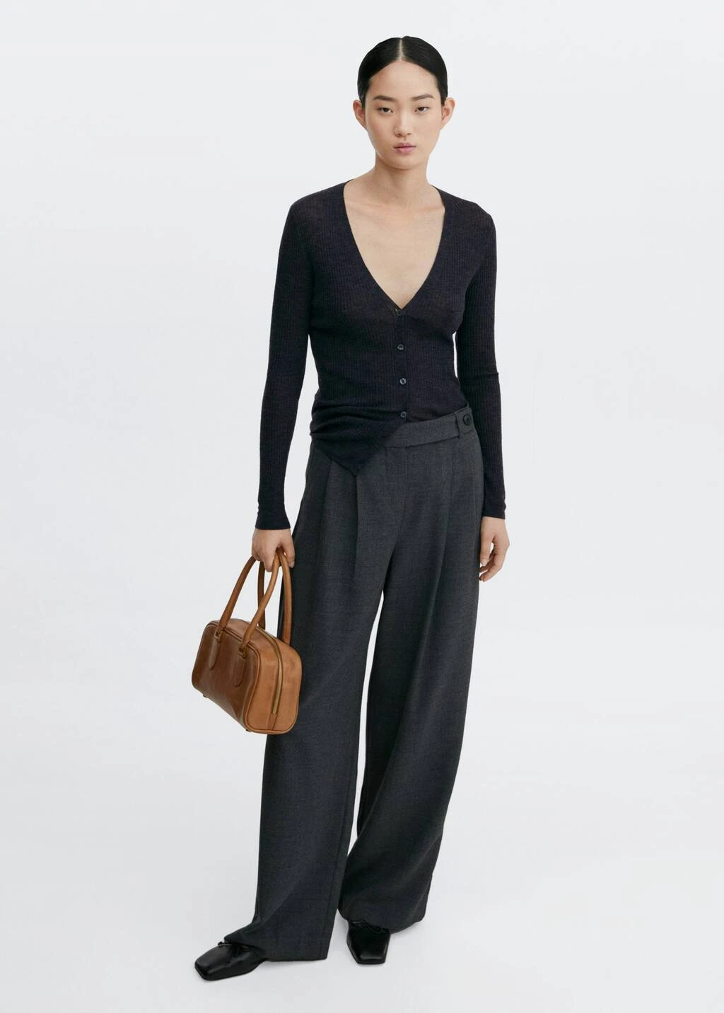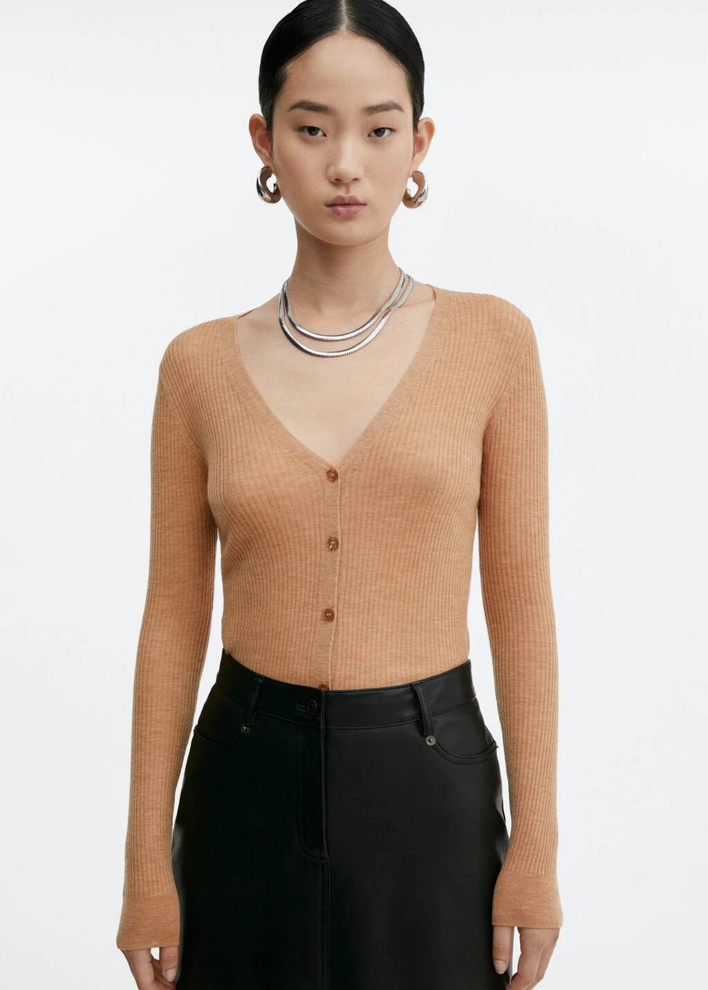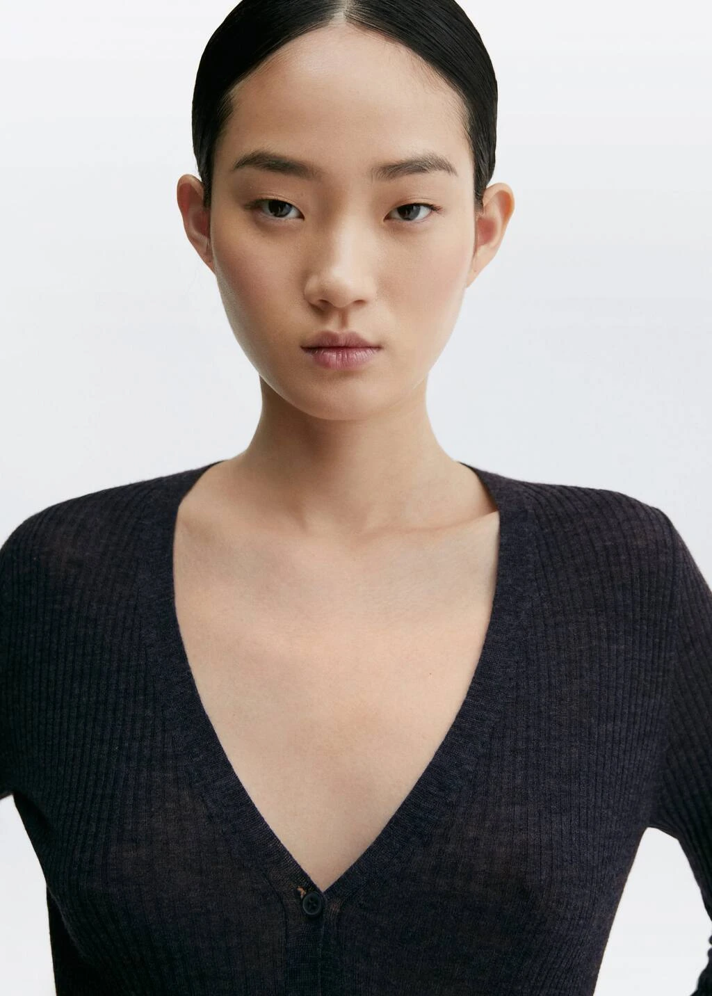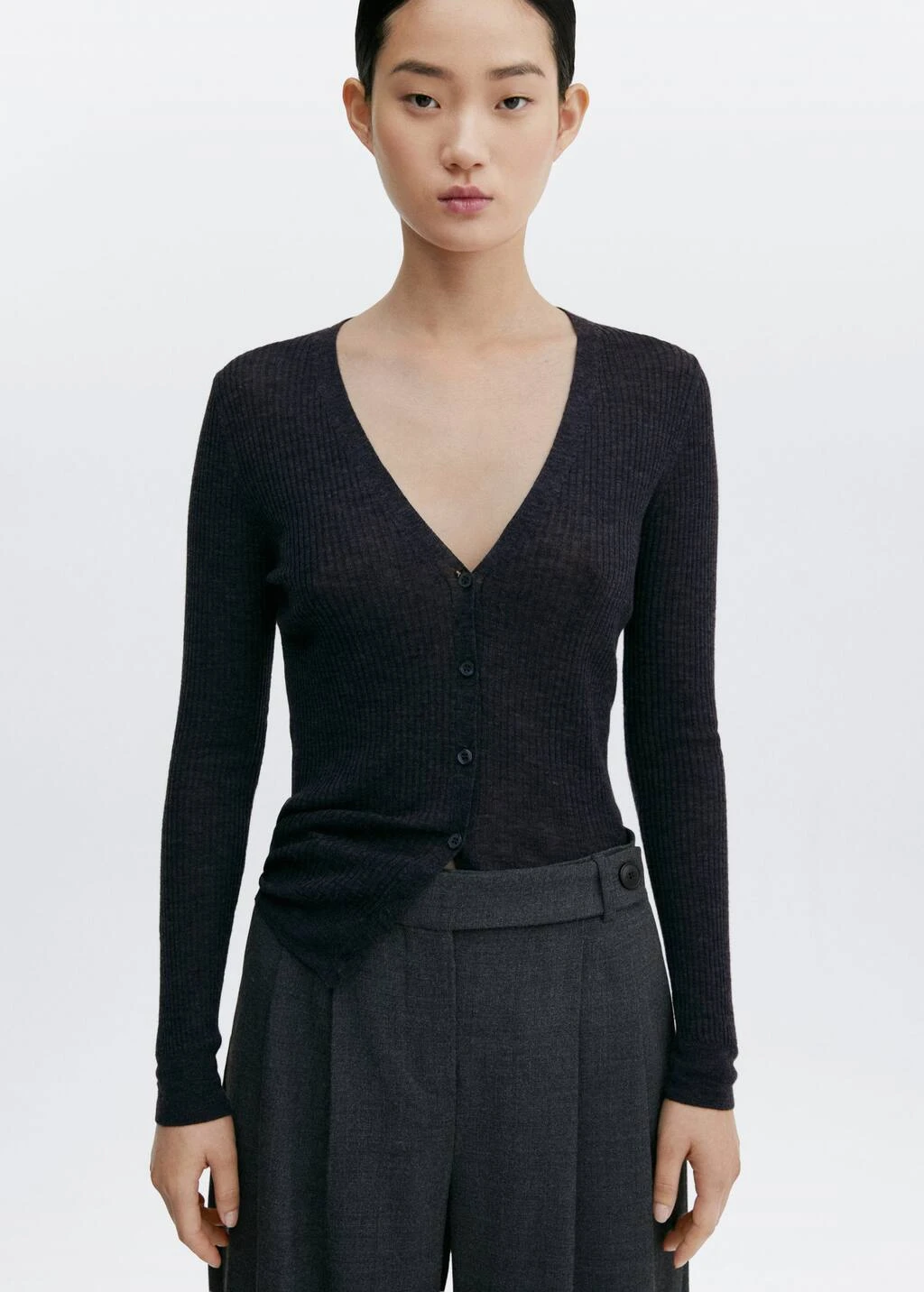 100Â % laine, ajuste, col en v, manches longues, fermeture boutonnee sur le devant, collection selection, une selection de pieces qui vous accompagneront lors du retour au bureau. confectionnee avec des matieres de qualite pour creer une garde-robe feminine et contemporaine pour votre quotidien.