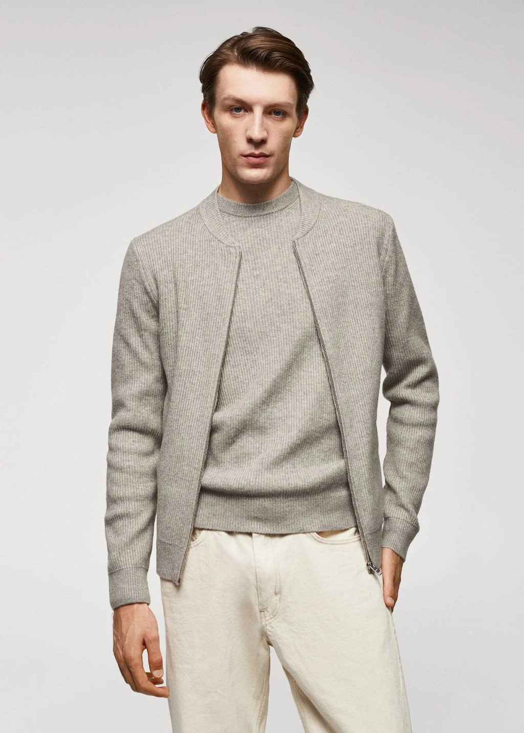 Cardigan Maille Côtelée Laine Mélangée