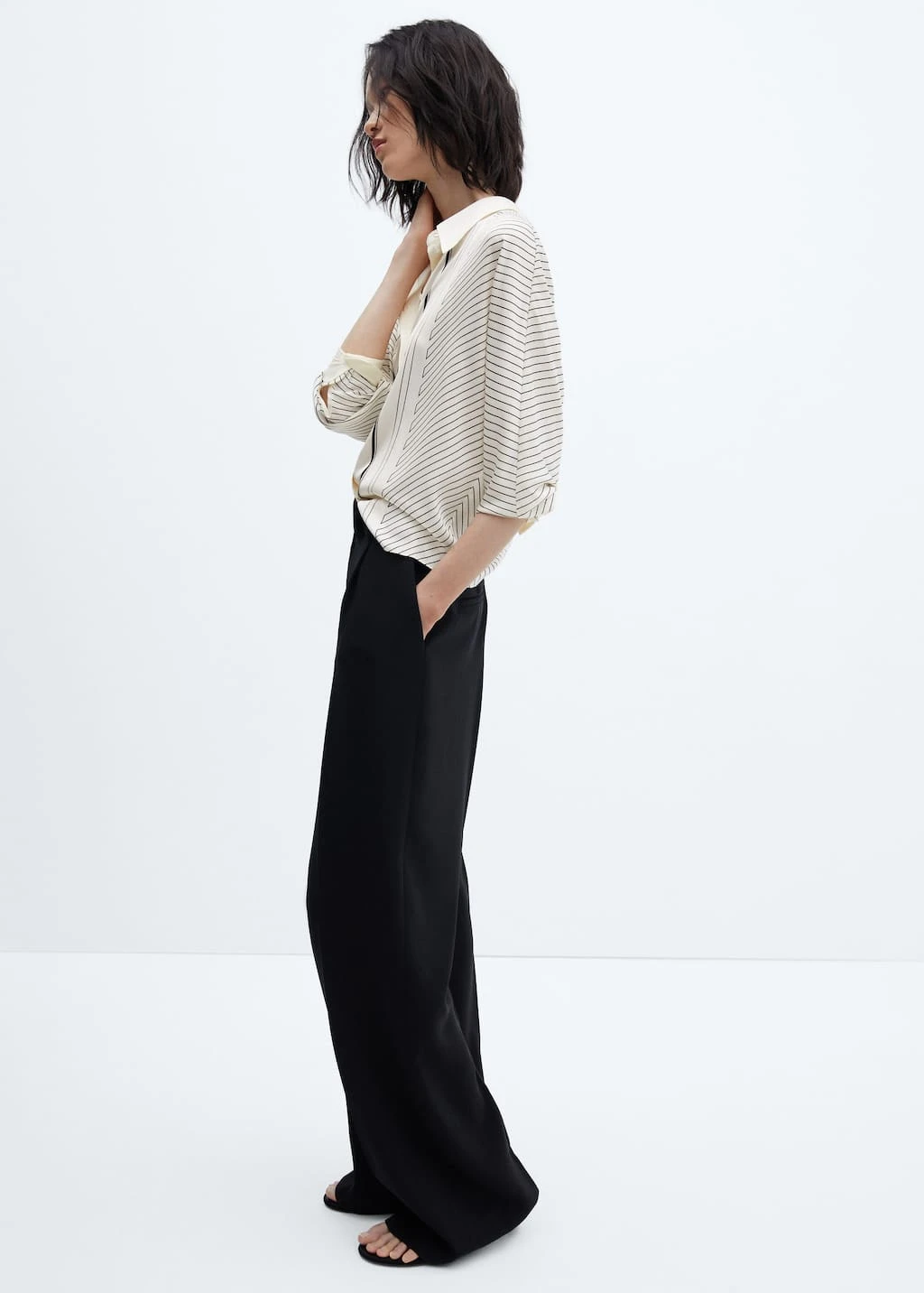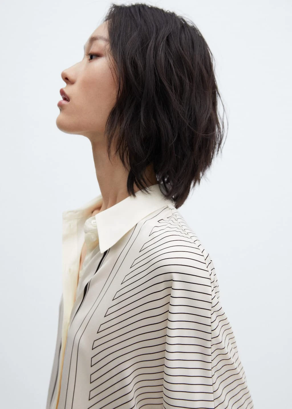 tissu satine, tissu fluide, style oversize, bicolore, imprime geometrique, col chemise, manches longues boutonnees, fermeture boutonnee sur le devant, disponible plusComposition: 97% polyester,3% elasthanne