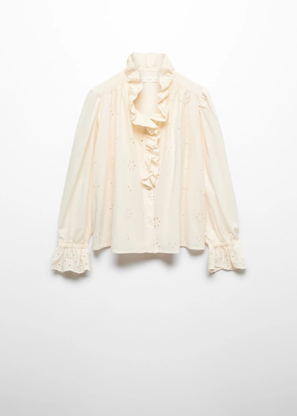 100 % coton, ajoure, droit, col en v, manches longues, fermeture a boutons sur le devant, details volantesComposition: 100% coton. Broderie: 100% coton