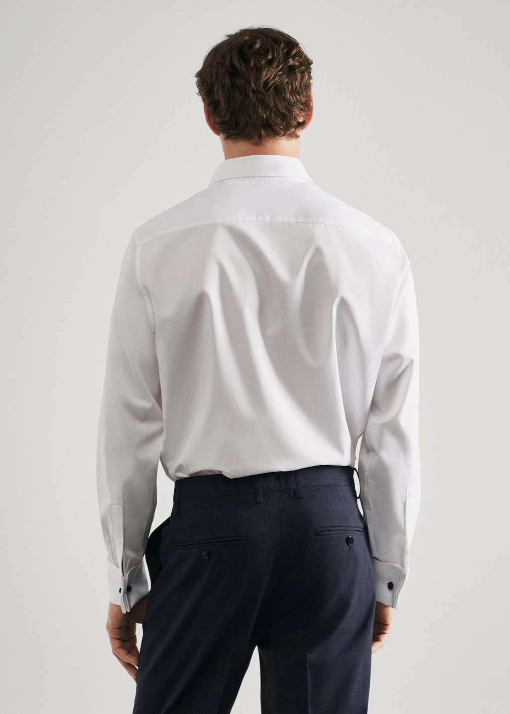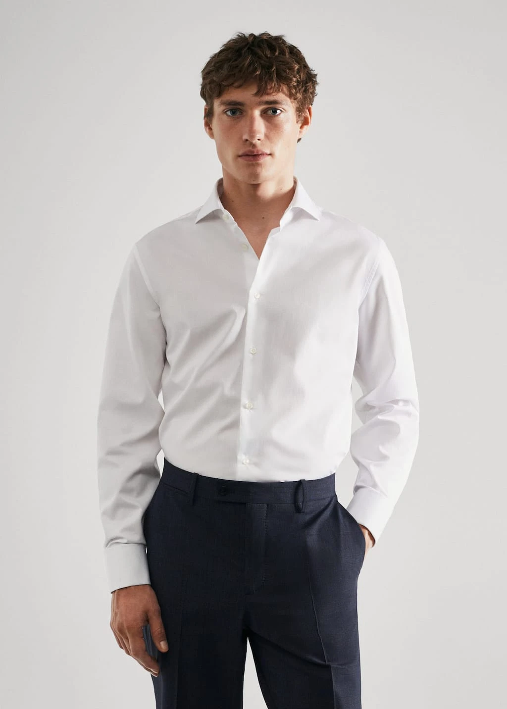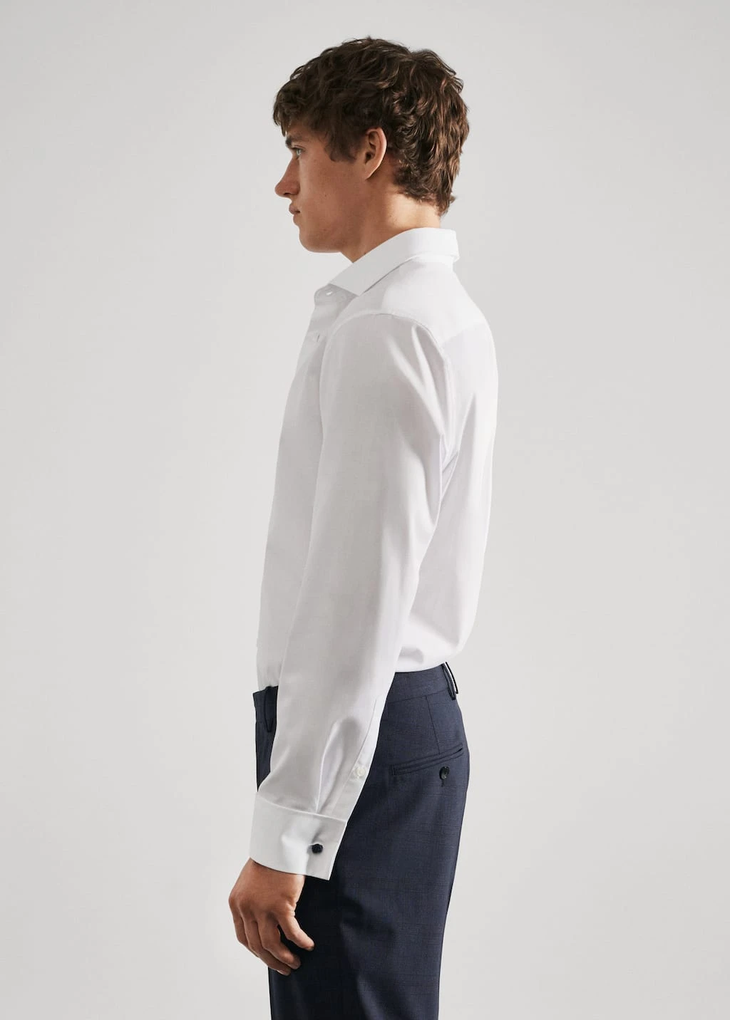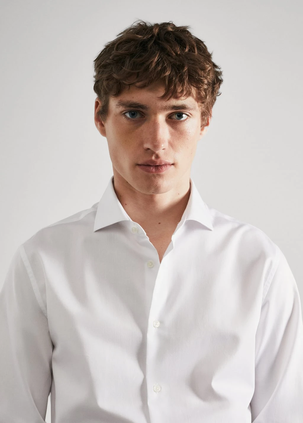 tissu en coton, regular-fit, col cutaway, manches longues avec poignets boutonnes, poignet double avec bouton de manchette integre, fermeture boutonnee sur le devant, repassage facile, le mannequin mesure 185 cm et porte une taille mCOMPOSITION:70% COTON,30% LYOCELL