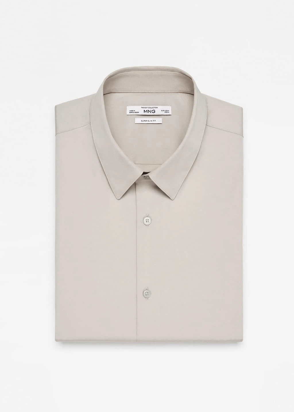 super slim-fit, tissu popeline de coton, tissu en coton stretch, col classique, manches longues avec poignets boutonnes, fermeture boutonnee sur le devant, le mannequin mesure 185 cm et porte une taille m, collection essentiels, la couleur beige est une exclusivite en ligne, le tissu de cette chemise possede une finition particuliere, il a ete traite de facon a etre moins froisse apres le lavage et a se repasser plus facilement et efficacement. durabilite : 30/40 lavagesComposition: 71% coton,25% polyamide,4% elasthanne