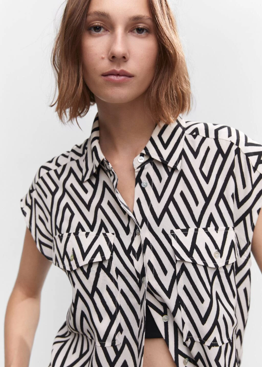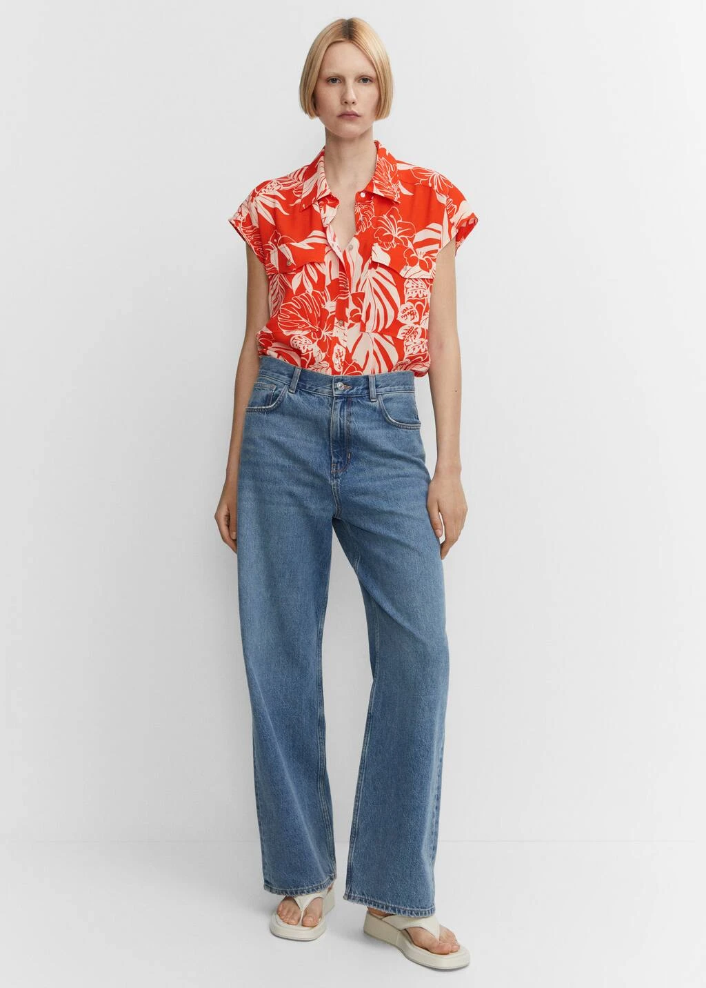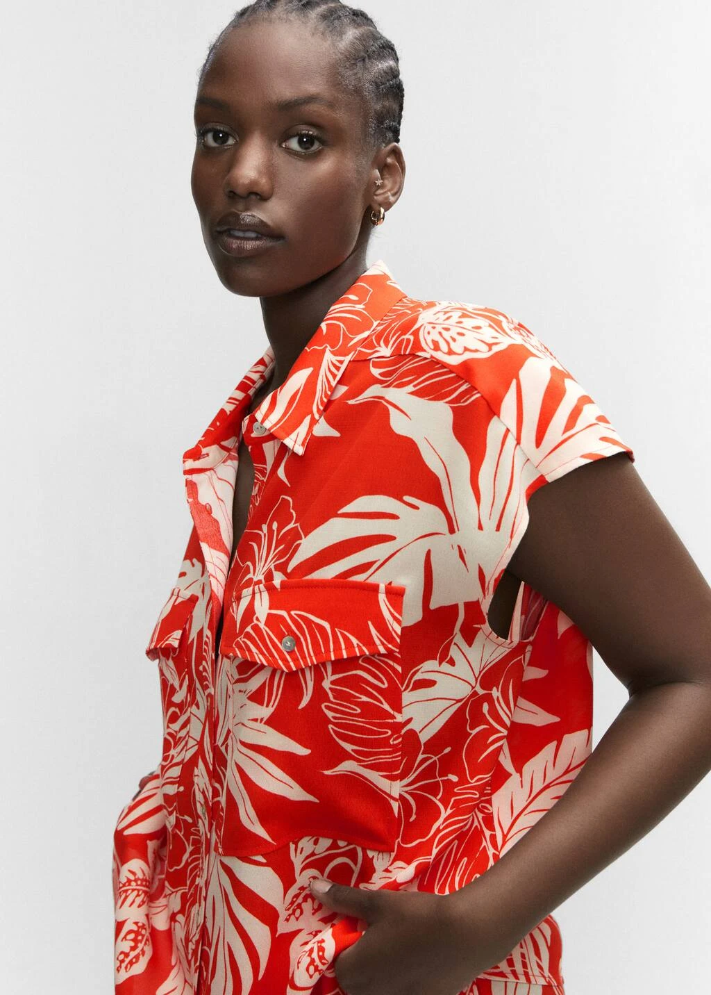 tissu fluide, style oversize, coupe longue, imprime tropical, col chemise, sans manches, poche plaquee sur la poitrine, fermeture boutonnee sur le devant, total look, disponible plusComposition: 100% viscose