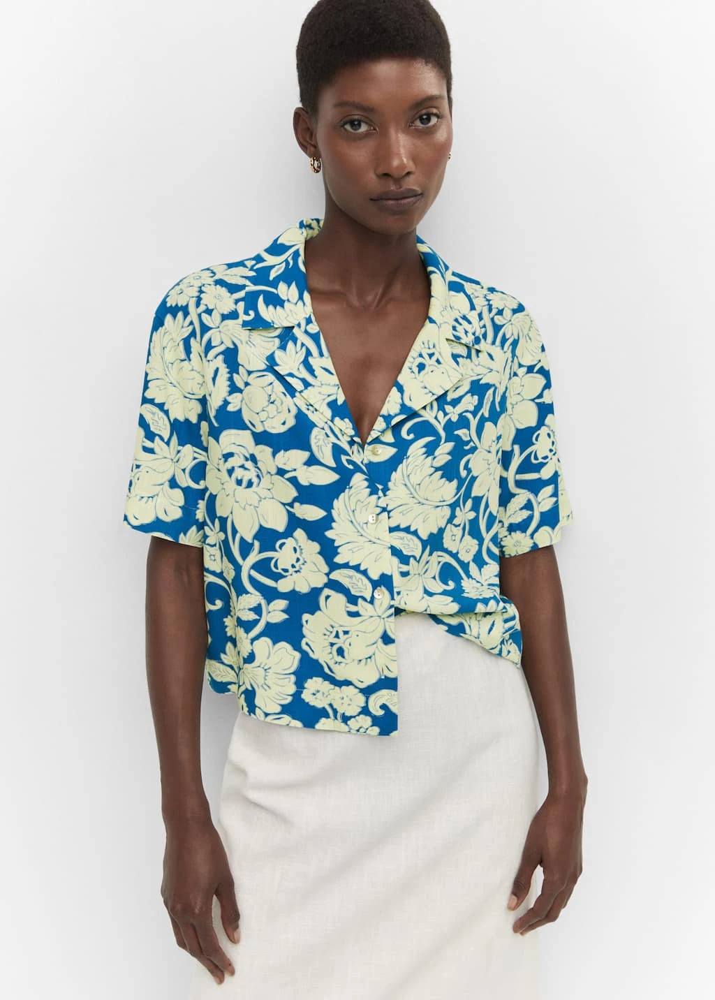 tissu fluide, droit, imprime floral, col chemise, manches courtes, fermeture boutonnee sur le devantComposition: 100% viscose