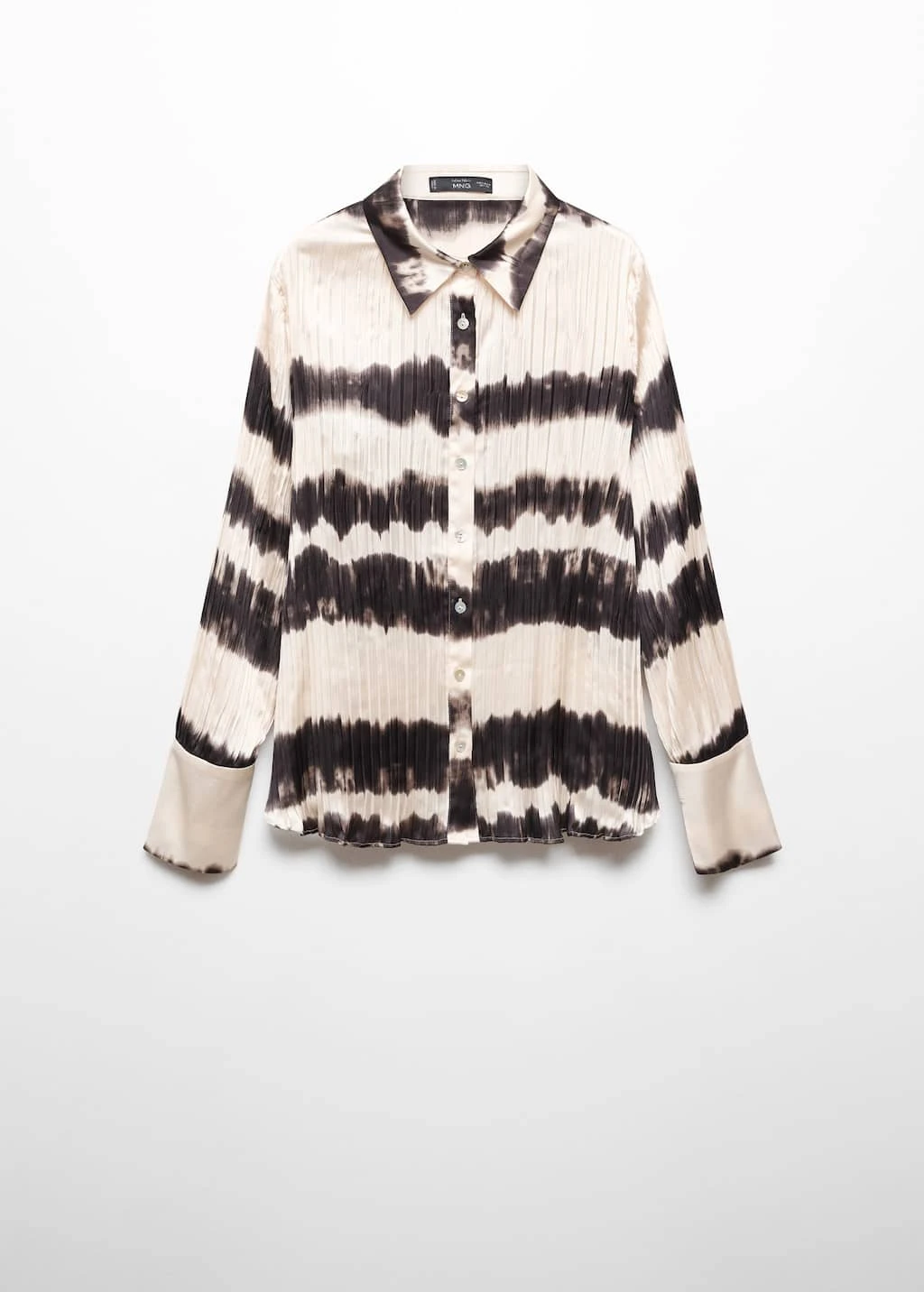 tissu plisse, tissu satine, tissu fluide, imprime tie-dye, droit, col chemise, manches longues avec poignets boutonnes, fermeture boutonnee sur le devant, total lookComposition: 100% polyester