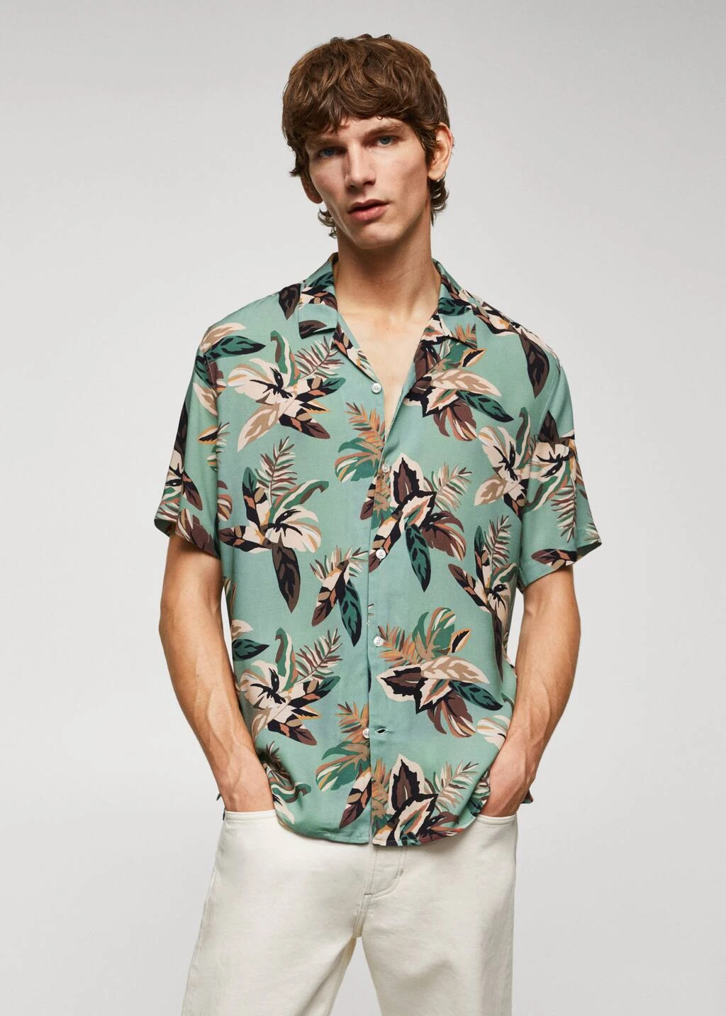 regular-fit, tissu fluide, imprime hawaien, col bowling, fermeture a boutons sur le devant, manches courtes, bas droit, le mannequin mesure 190 cm et porte une taille mComposition: 100% viscose