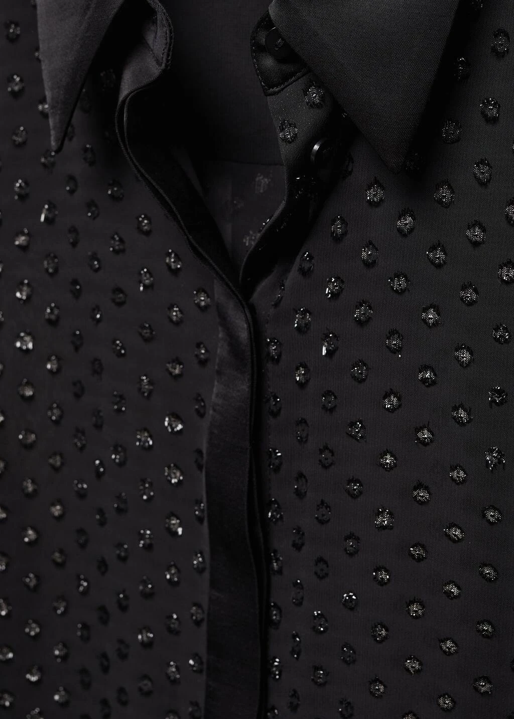 tissu leger, tissu en fil metallise melange, coupe droite, modele semi-transparent, imprime a pois, col chemise, manches longues avec poignets boutonnes, fermeture a boutons dissimulee sur le devant, details en lurex, doublure, disponible plusComposition: 100% polyester. Doublure: 100% polyester. Col: 100% viscose. Revers: 100% viscose. Couvercle: 100% viscose