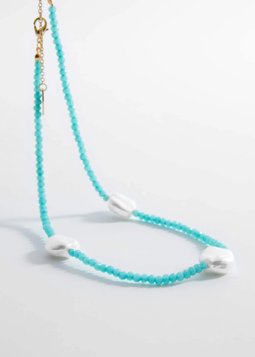 detail perle, ornement perle, fermoir a chainette et mousquetonComposition: 60% acrylique,20% verre,10% laiton,10% coton