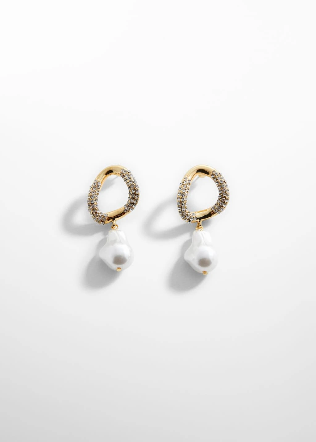 taille moyenne, forme creole, detail en strass, pendentif a perle, fermoir metallique a pressionComposition: 50% acrylique,40% zinc,10% verre