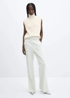 Gilet Maille Côtelée Col Roulé