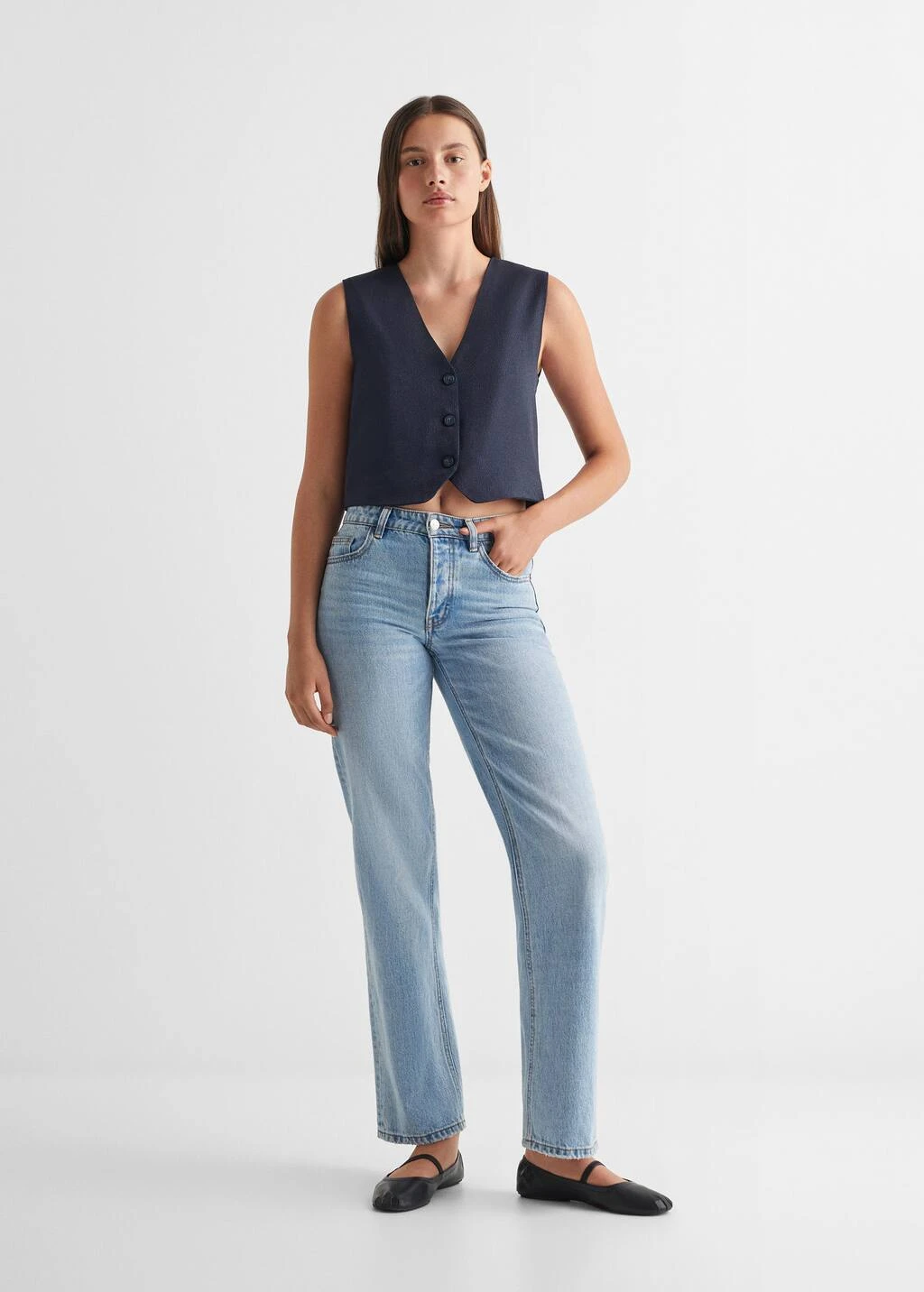 style crop, col en v, fermeture boutonnee, sans manchesComposition: 60% viscose,40% polyester. Doublure: 100% coton