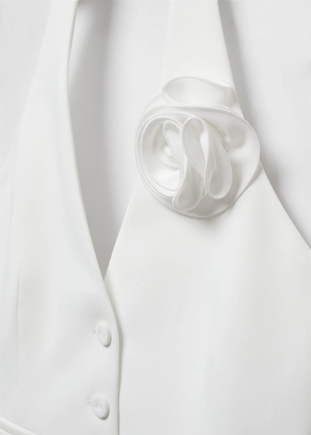 ajuste, coupe courte, emmanchures americaines, bretelles larges, encolure au dos, deux poches passepoilees a l’avant, ornement fleur, fermeture boutonnee sur le devant, collection fetes et ceremoniesComposition: 100% polyester. Doublure: 100% polyester
