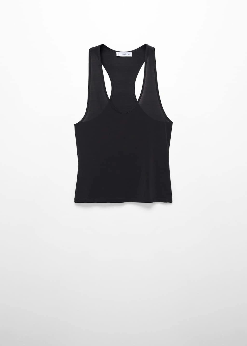 tissu fluide, tissu en maille fine, coupe cintree, col rond, bretelles larges, dos nageurComposition: 92% viscose,8% elasthanne