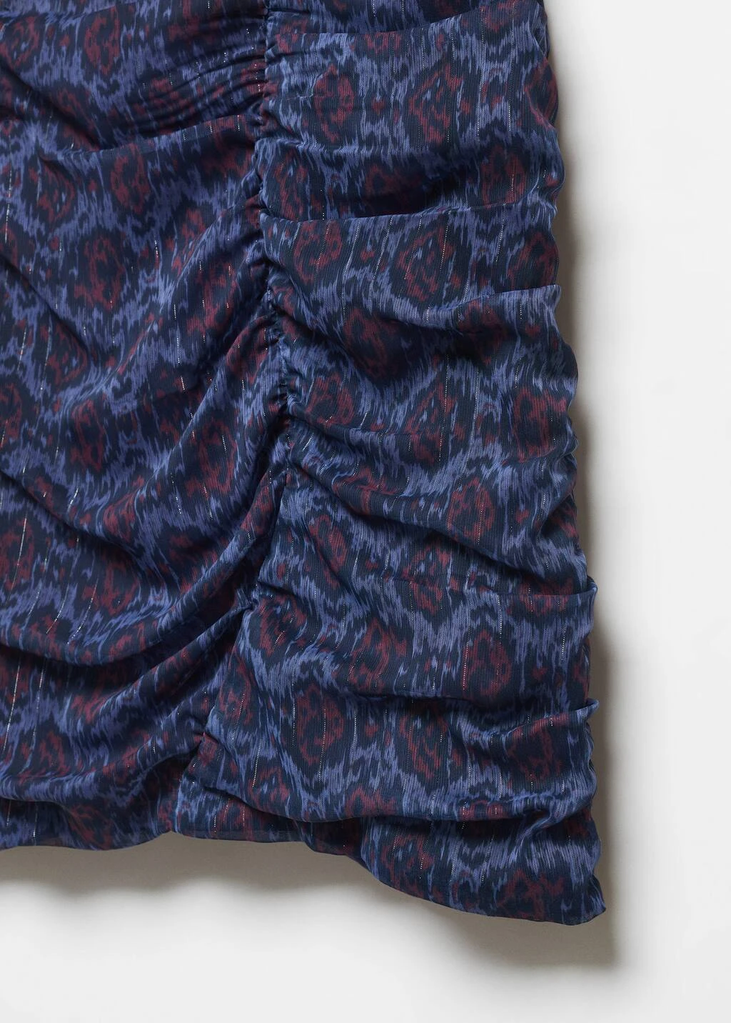 tissu polyester, imprimee, coupe courte, detail fronce, sans fermeture, le mannequin mesure 172 cm et porte une taille mComposition: 100% polyester