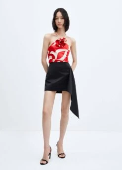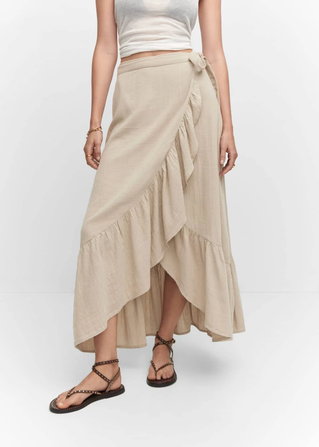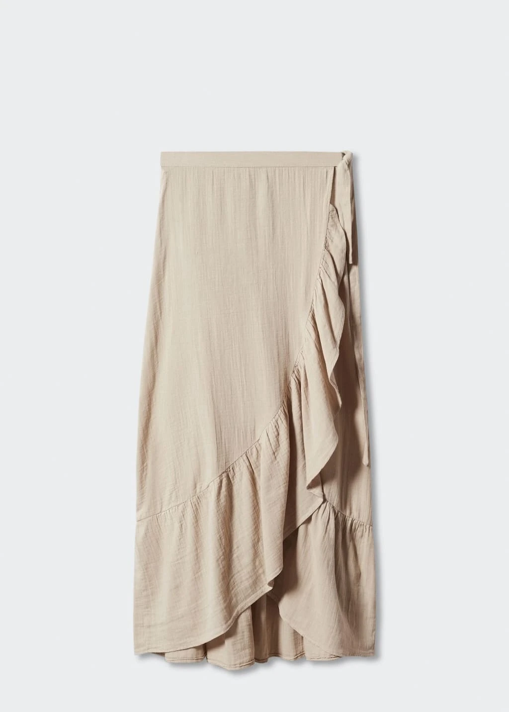 tissu 100 % coton, tissu texture, croise, coupe midi, taille haute, fermeture laterale a nœudsComposition: 100% coton