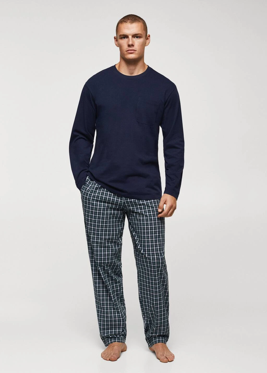pack t-shirt et pantalon de pyjama, 100 % coton, regular-fit, t-shirt a manches longues, col rond, manches longues, bords coteles elastiques, taille elastique avec cordon, deux poches avant, vendu avec un sac de rangement, le mannequin mesure 183 cm et porte une taille mComposition: 100% coton. T-shirt: 100% coton