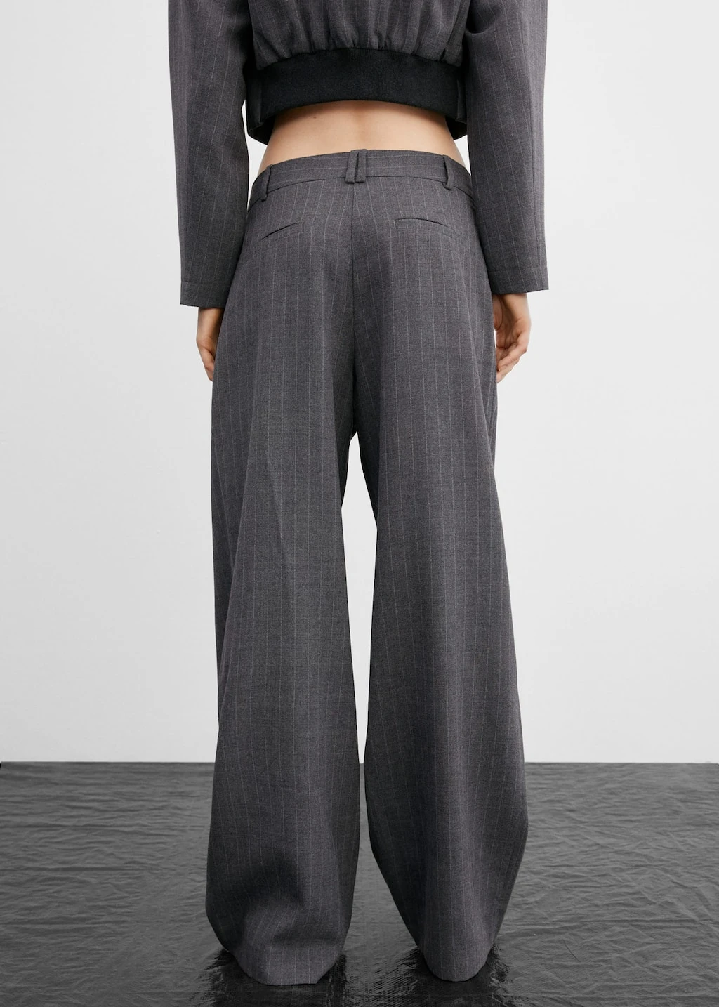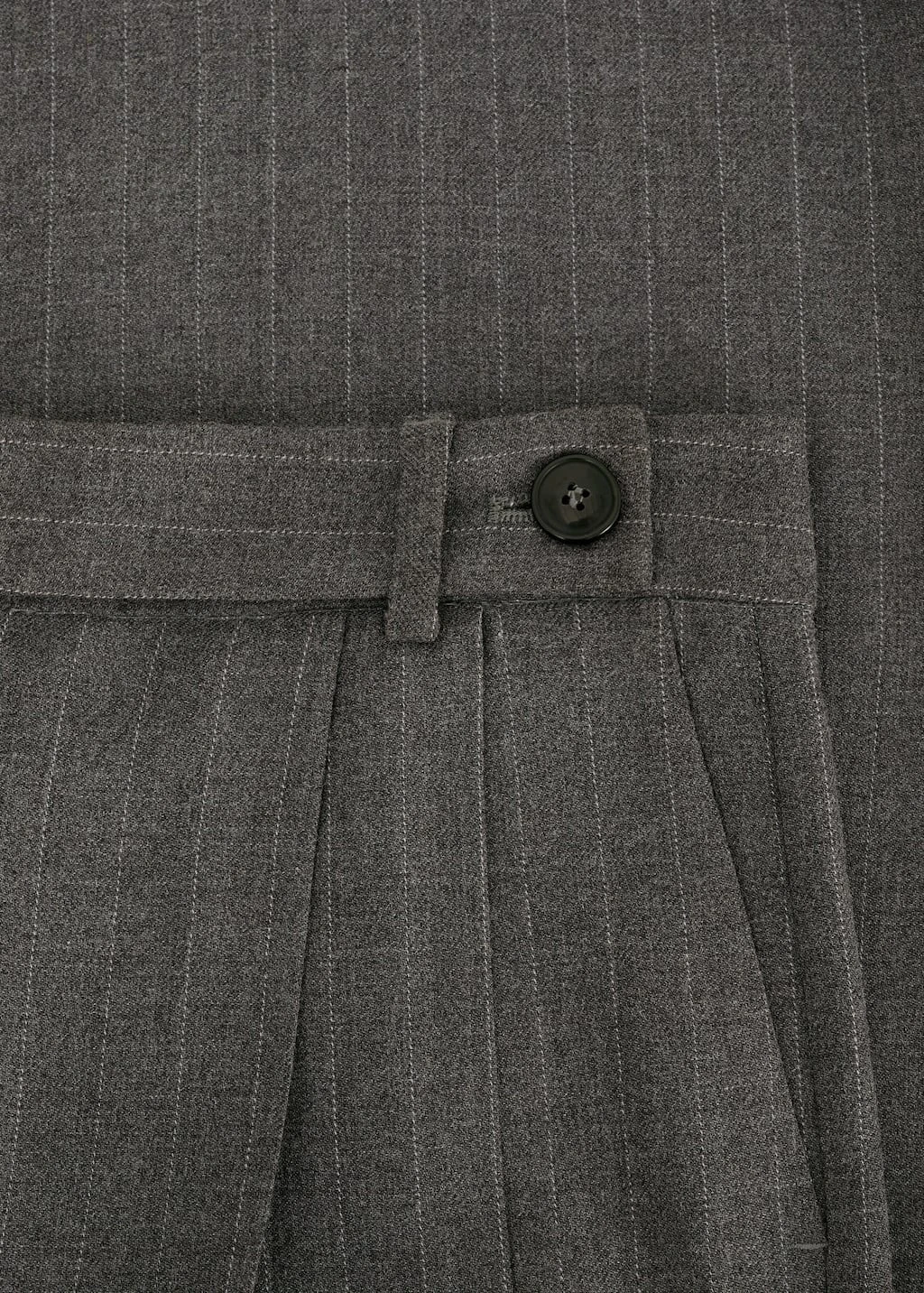 collection selection, tissu de laine melange, coupe wideleg, coupe longue, taille normale, imprime microrayures, deux poches laterales, deux poches passepoilees a l’arriere, fermeture eclair avec bouton, pinces, passants pour la ceinture, total look, une selection de pieces qui vous accompagneront lors du retour au bureau. confectionnee avec des matieres de qualite pour creer une garde-robe feminine et contemporaine pour votre quotidien.