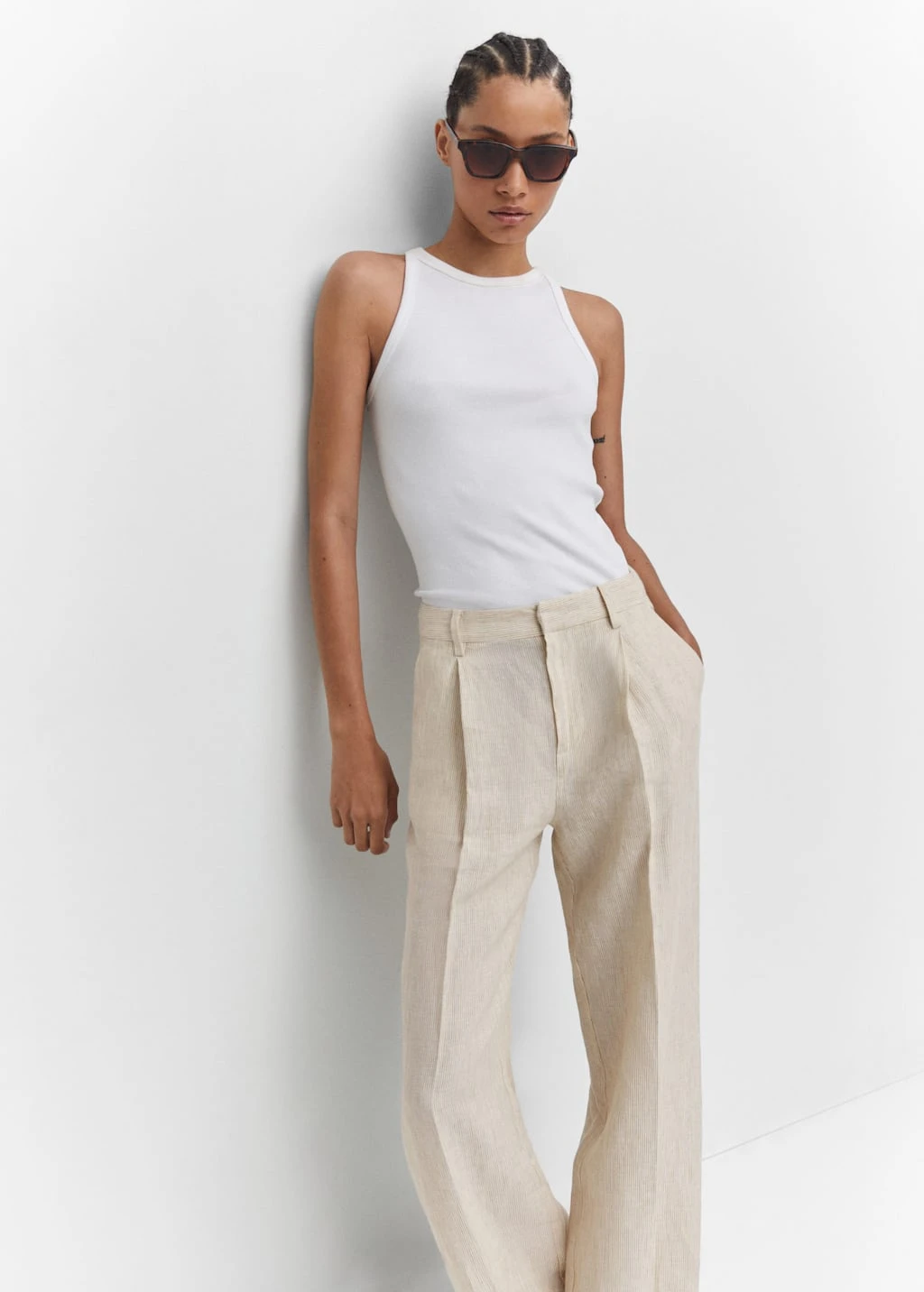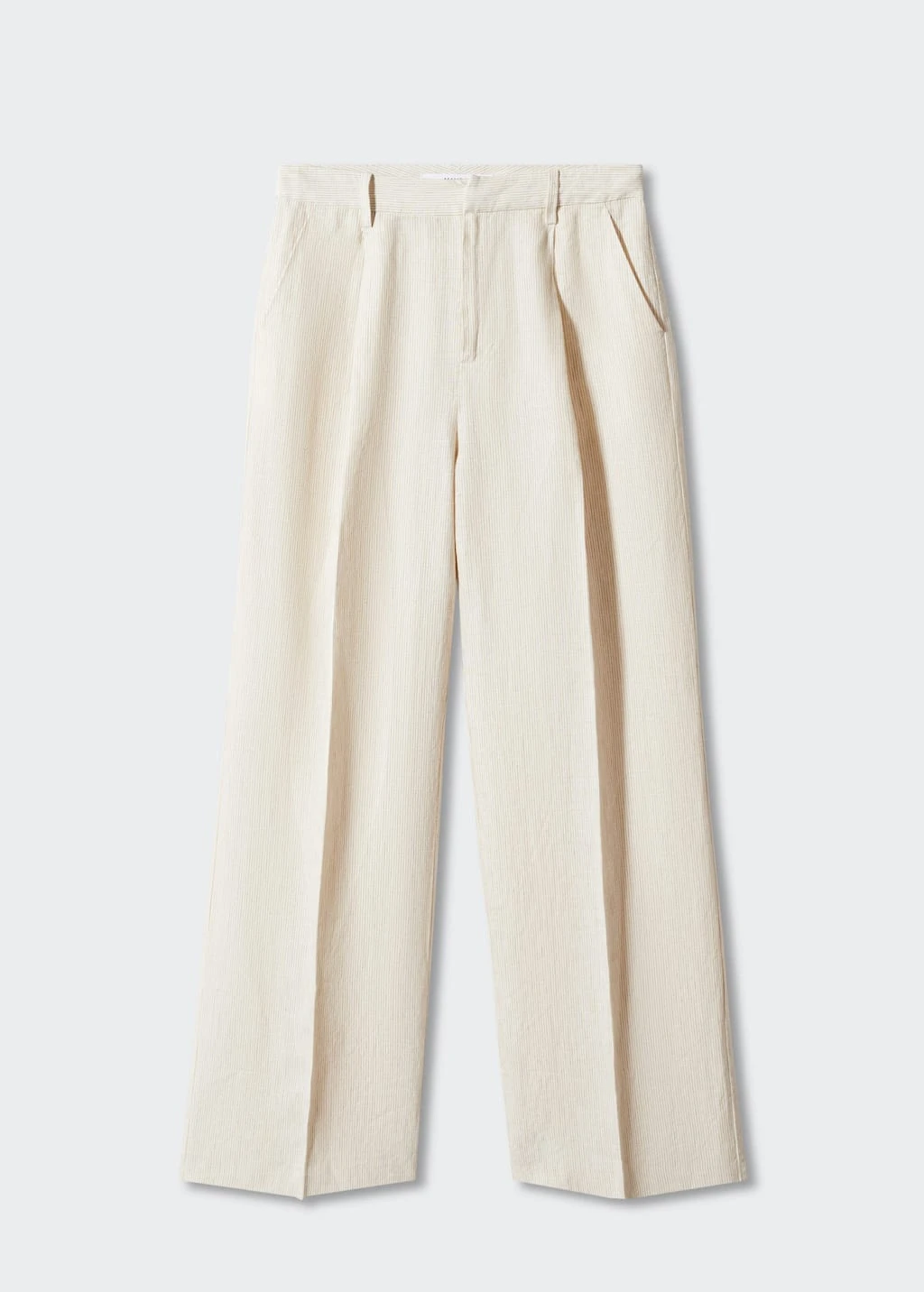 tissu 100 % lin, coupe droite, coupe longue, taille normale, pinces, passants pour la ceinture, deux poches laterales, deux poches passepoilees a l’arriere, fermeture eclair avec crochet et bouton dissimulesComposition: 100% lin. Doublure: 100% coton
