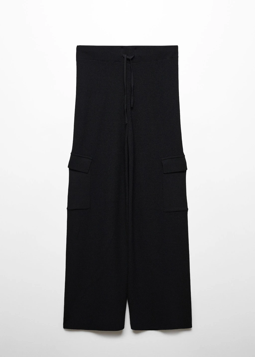 tissu en maille fine, design cargo, coupe longue, taille haute, deux poches cargo, taille elastique avec fermeture a nœudComposition: 50% polyamide,50% viscose