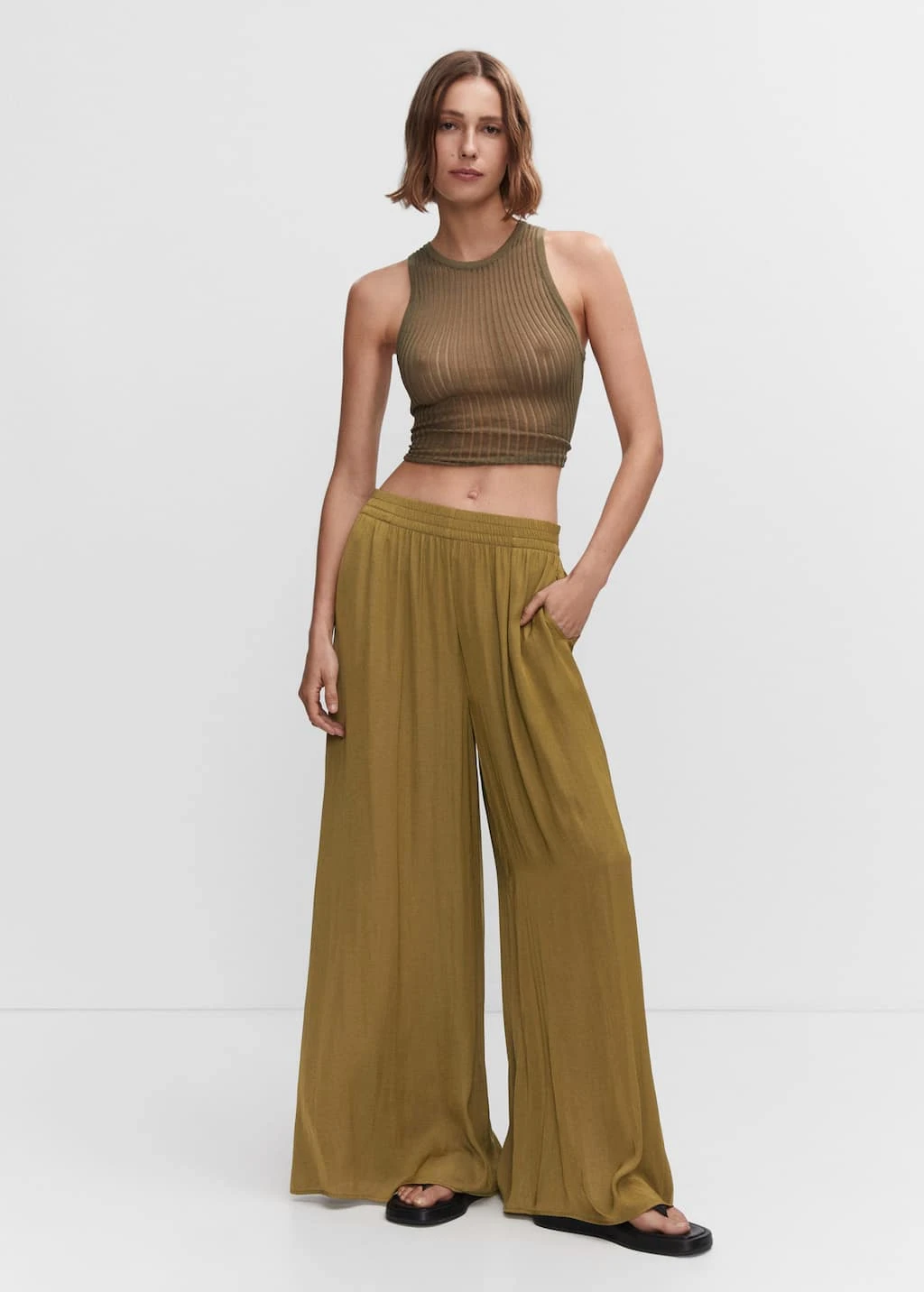 tissu fluide, motif palazzo, coupe maxi, taille basse, deux poches laterales, taille elastiquee, sans fermetureCOMPOSITION:100% POLYESTER