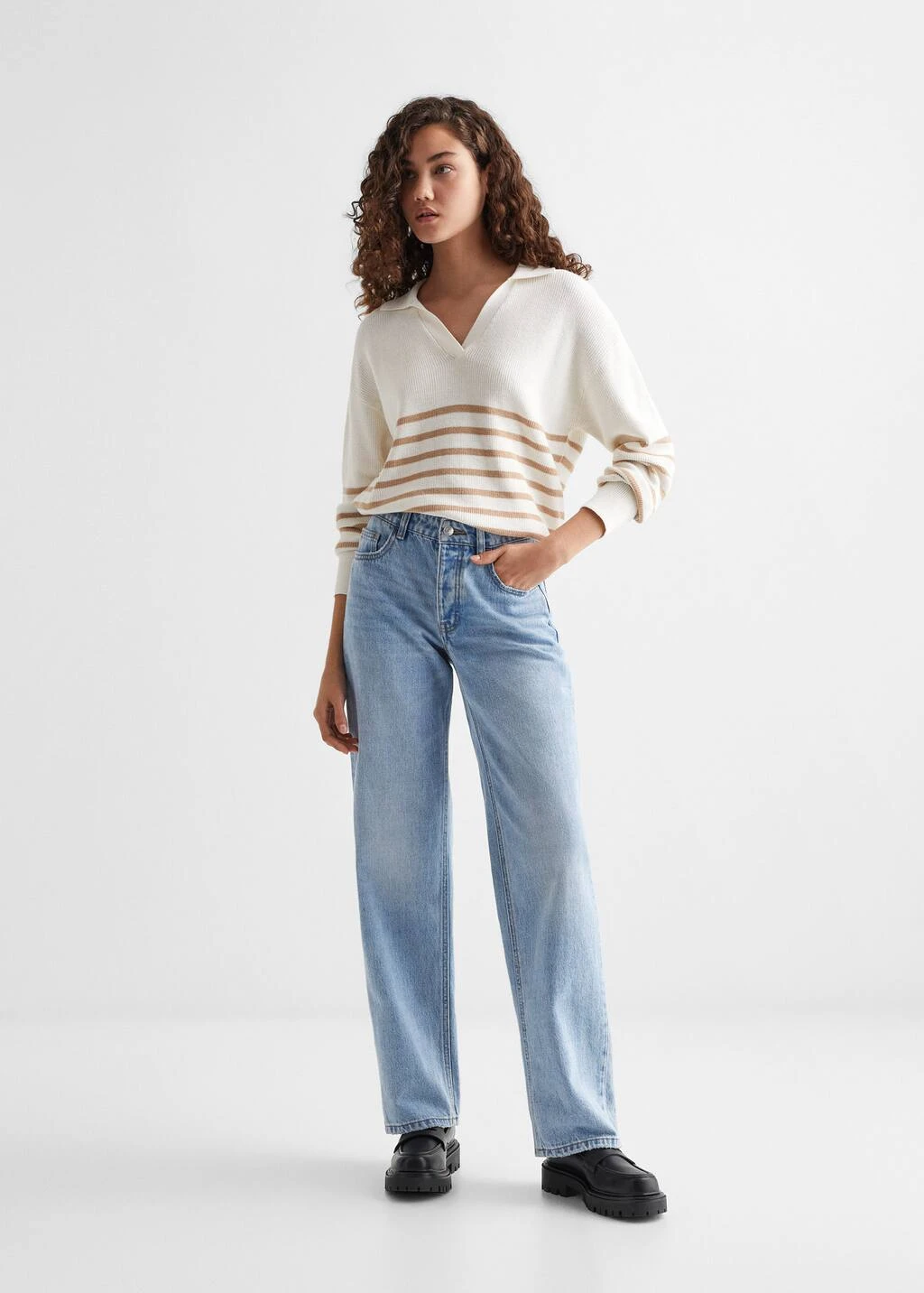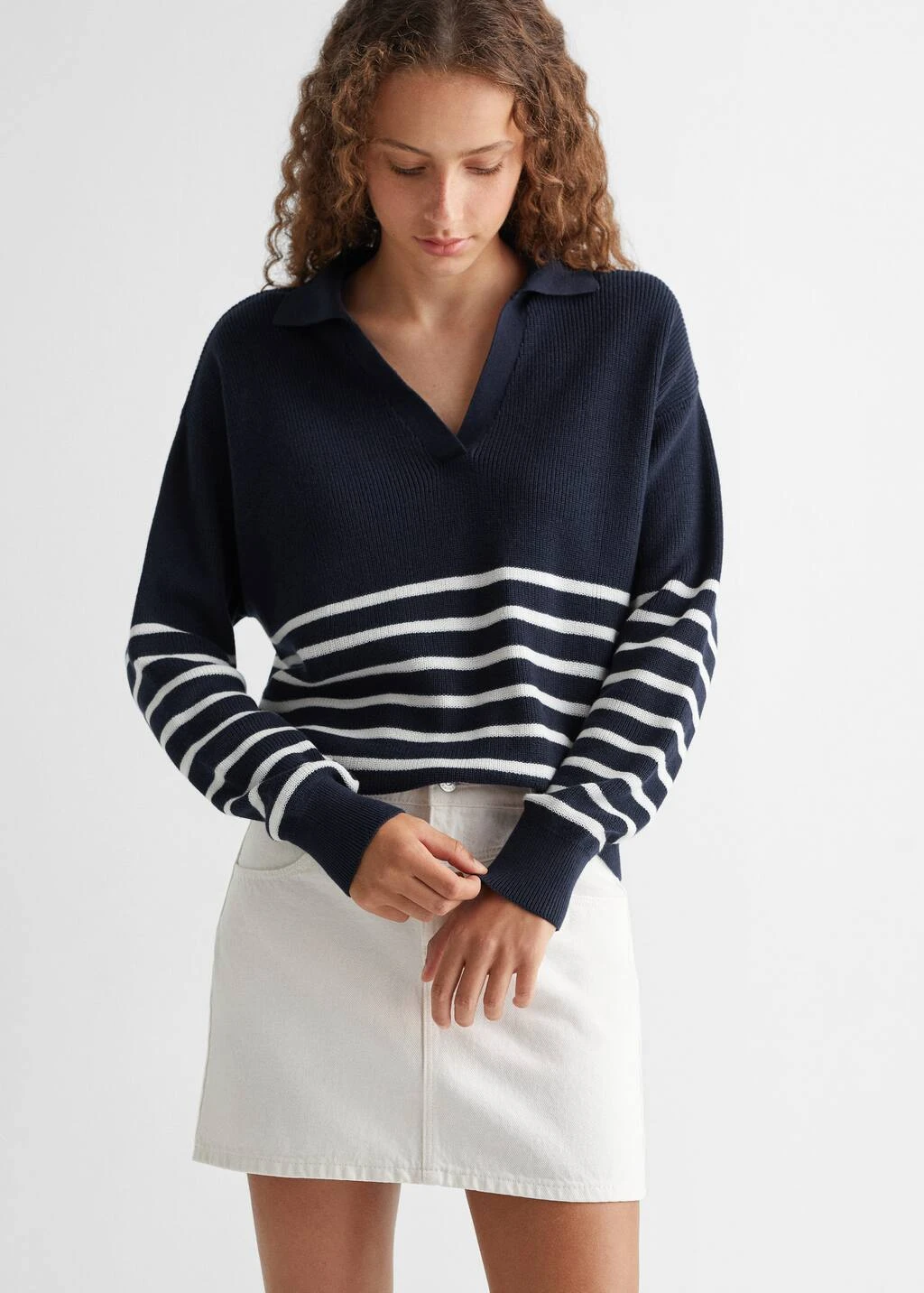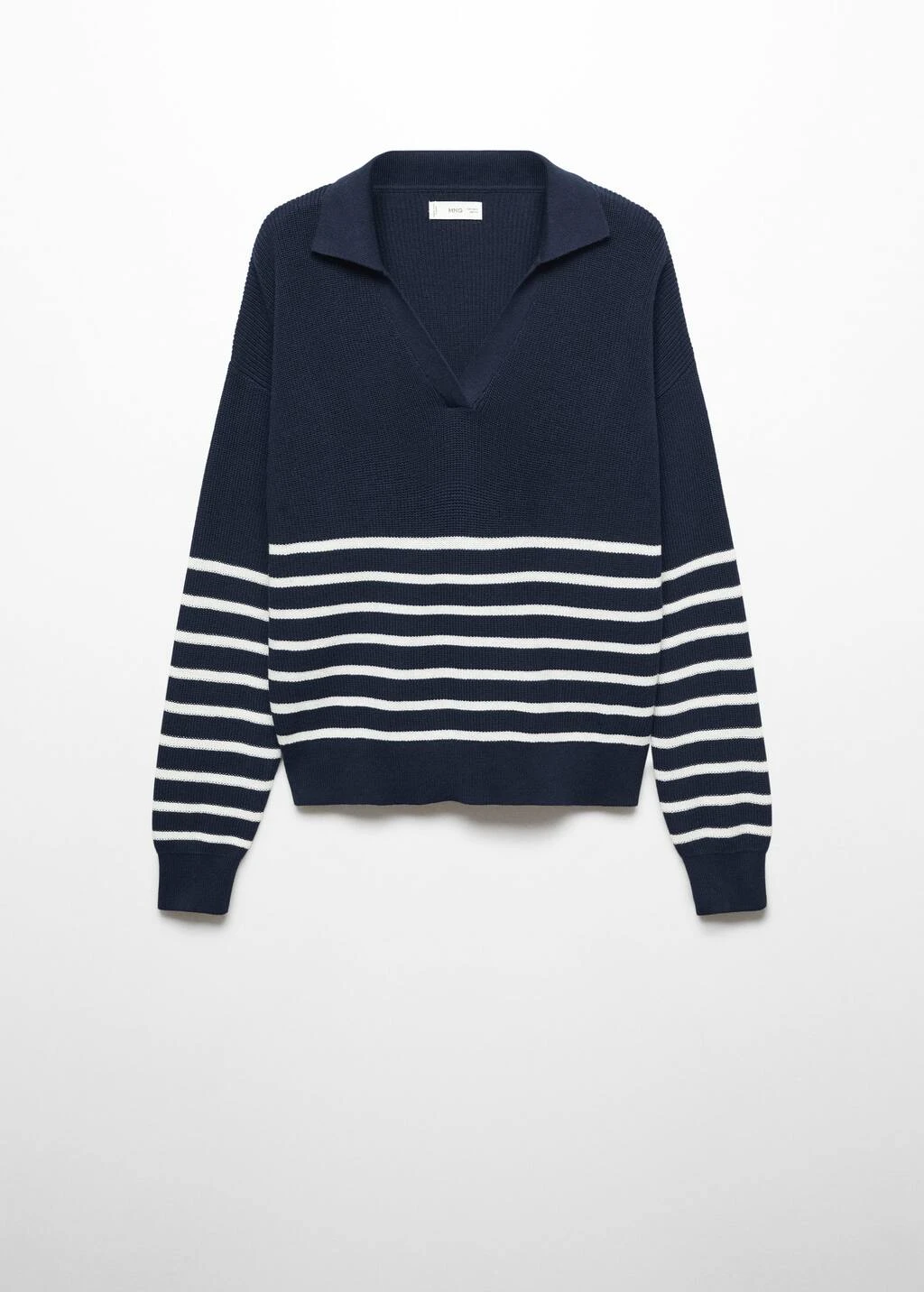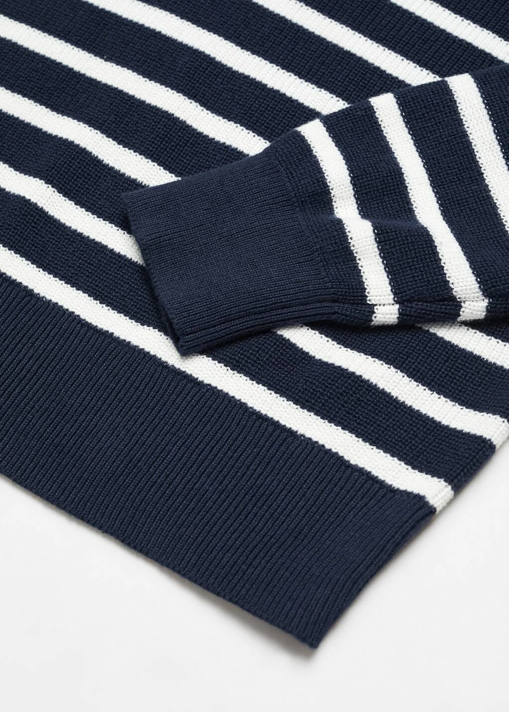 tissu en maille fine, coupe longue, coupe droite, imprime rayures, col en v, manches longuesComposition: 100% coton