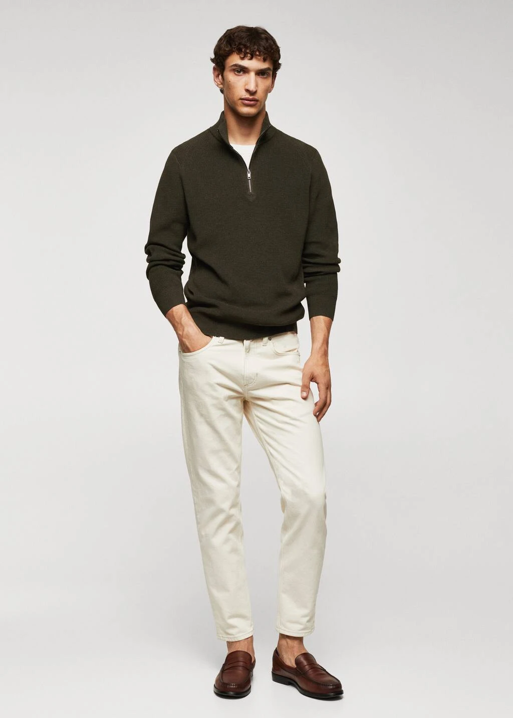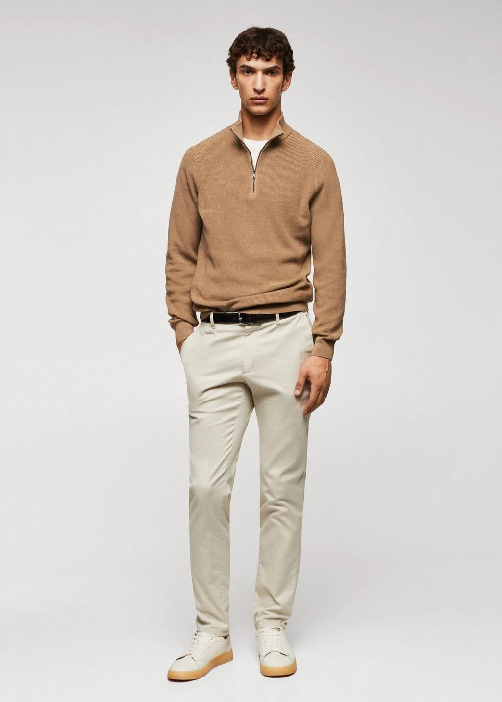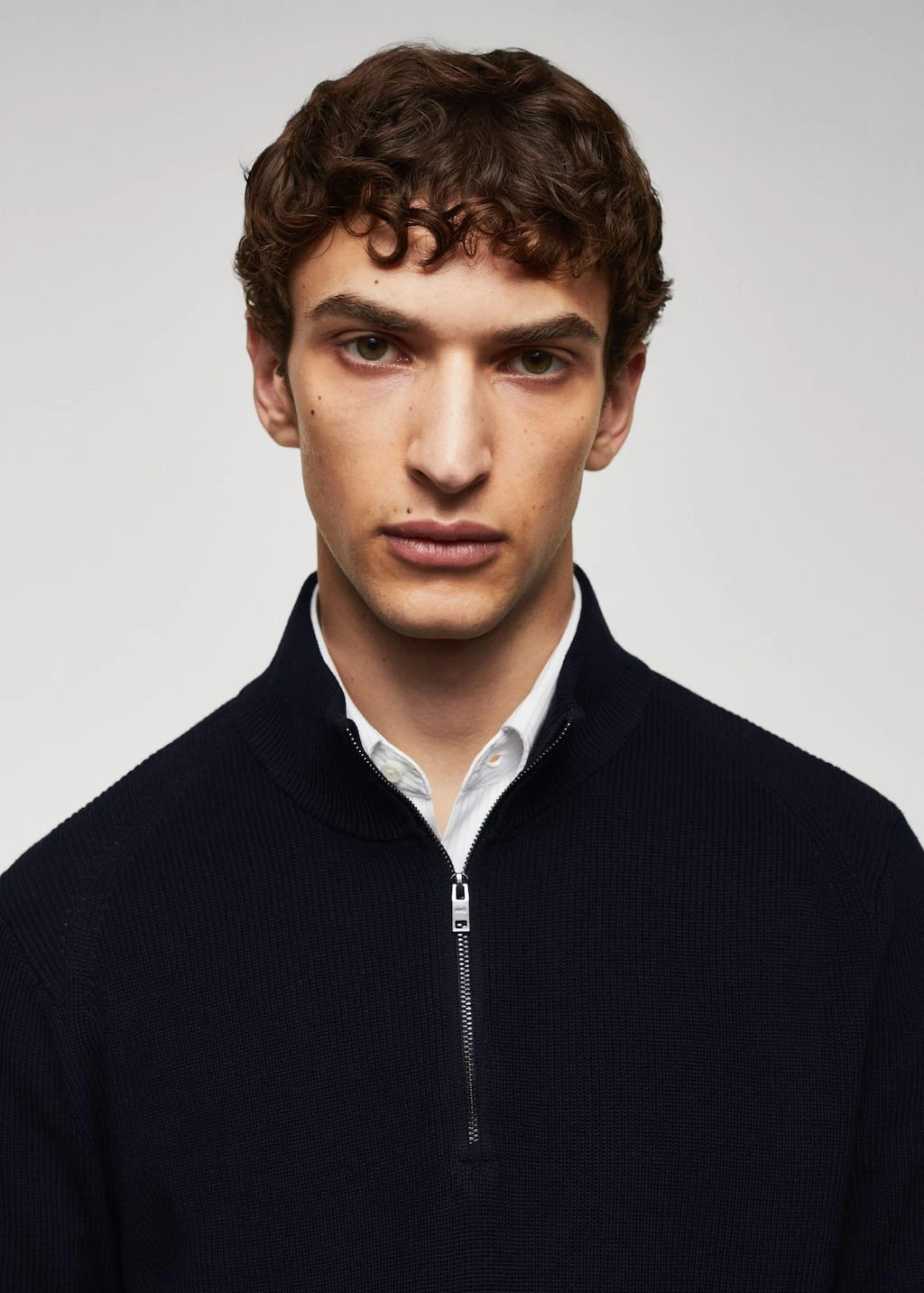 les essentiels : concus pour durer, tissu en maille fine, regular-fit, col montant, col montant a fermeture eclair, manches longues avec poignets elastiques, bas droit a bords coteles., le mannequin mesure 190 cm et porte une taille mComposition: 65% polyester recyclé,35% coton
