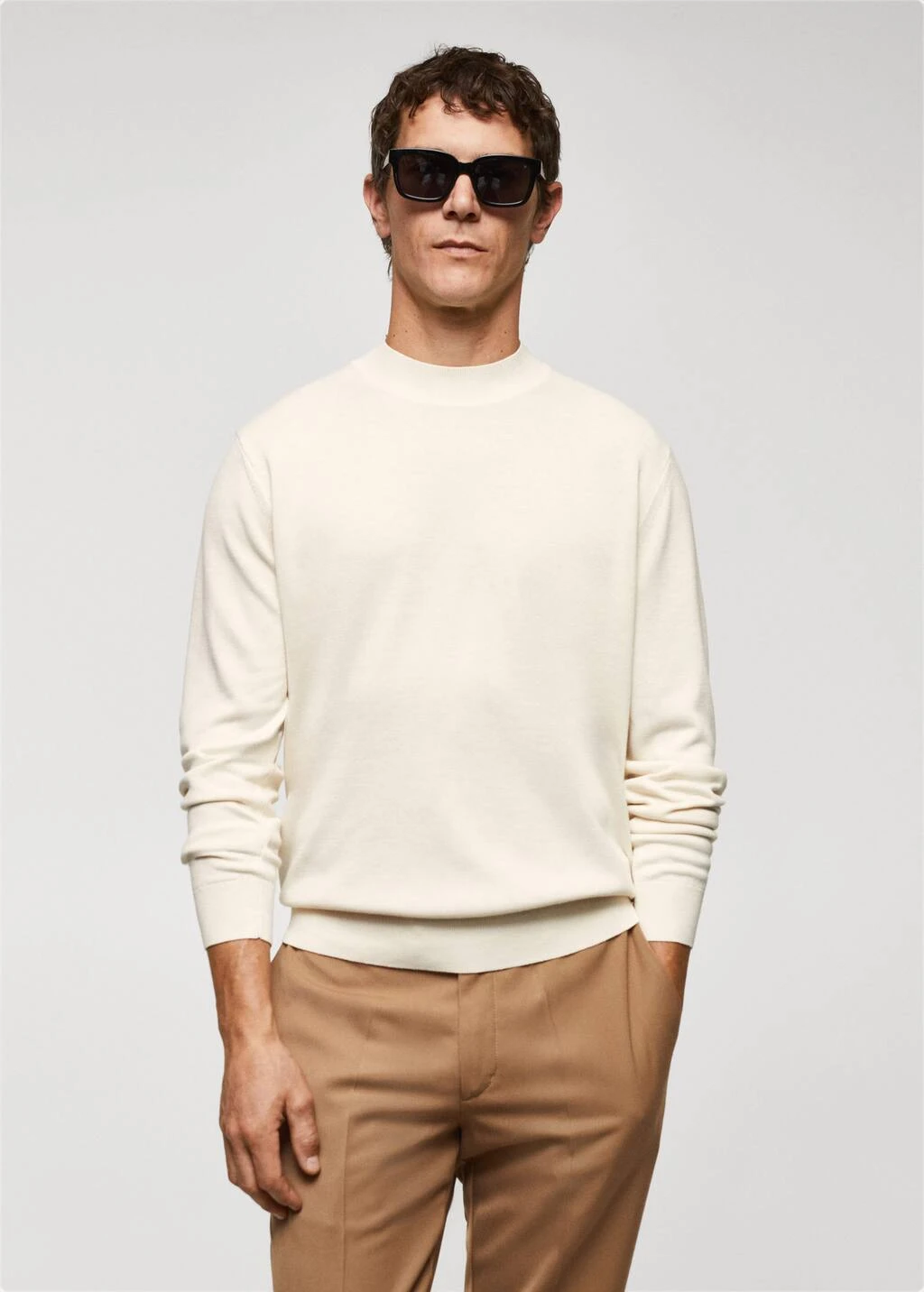 tissu en maille fine, regular-fit, col montant, manches longues, bas droit, bords coteles au niveau du col, des manches et sur le bas, le mannequin mesure 190 cm et porte une taille mComposition: 70% polyester recyclé,25% lyocell,5% laine