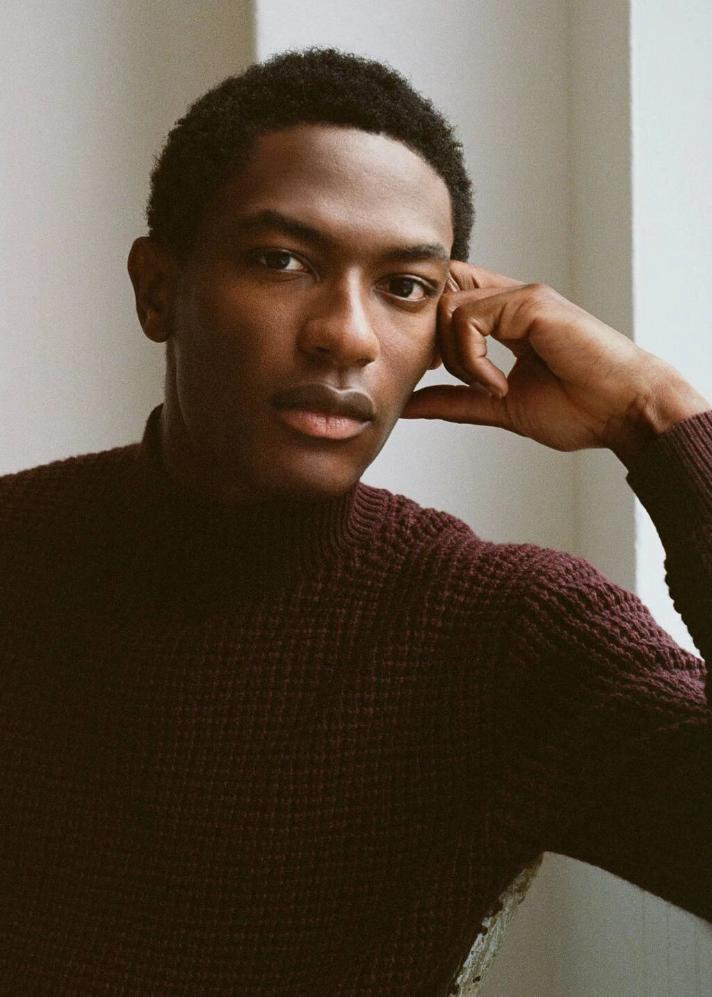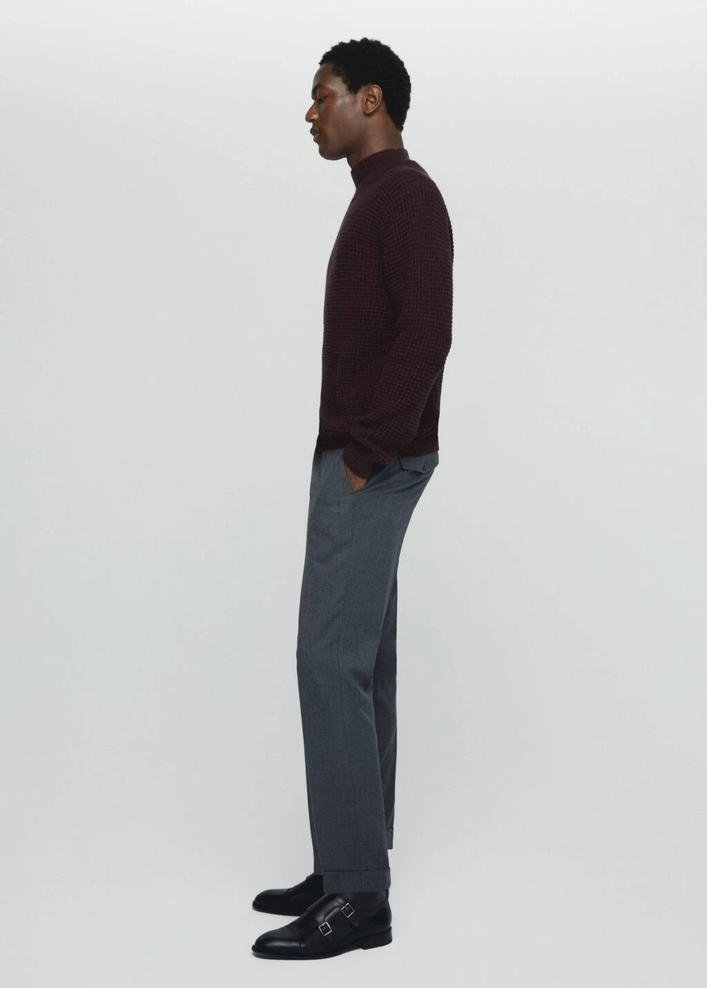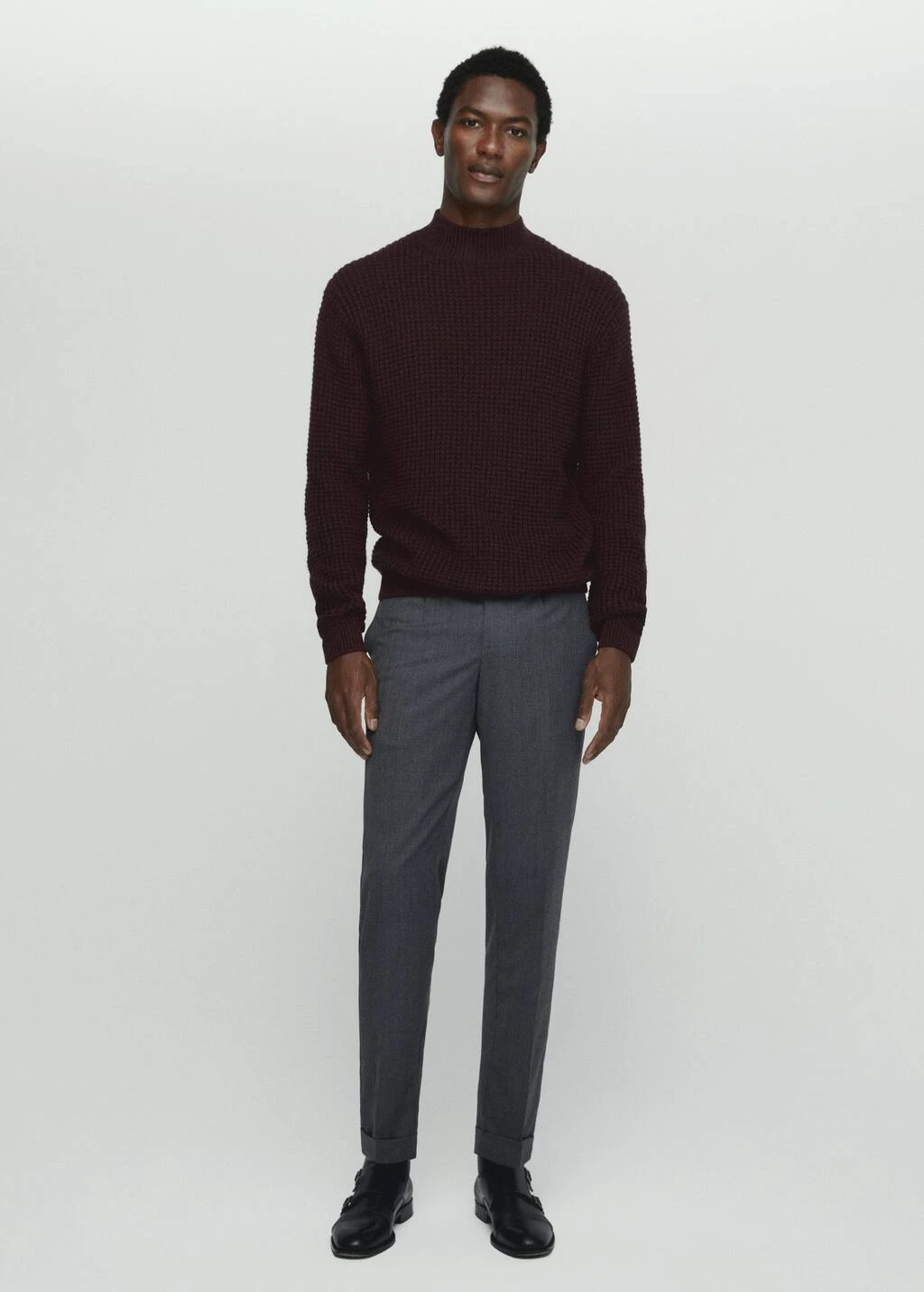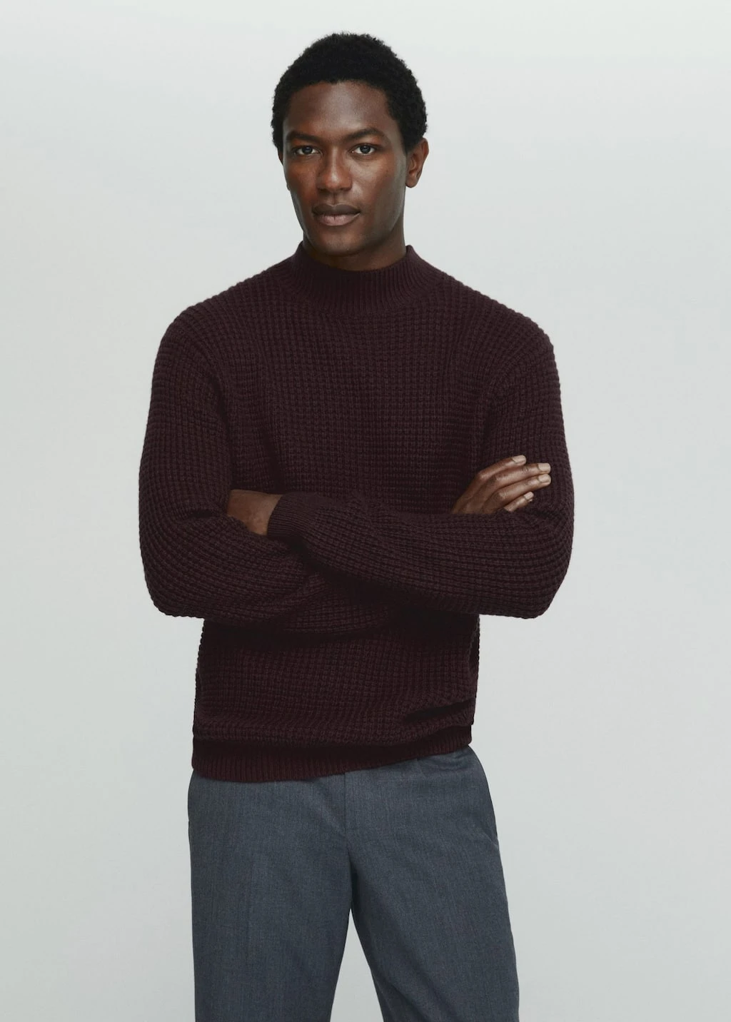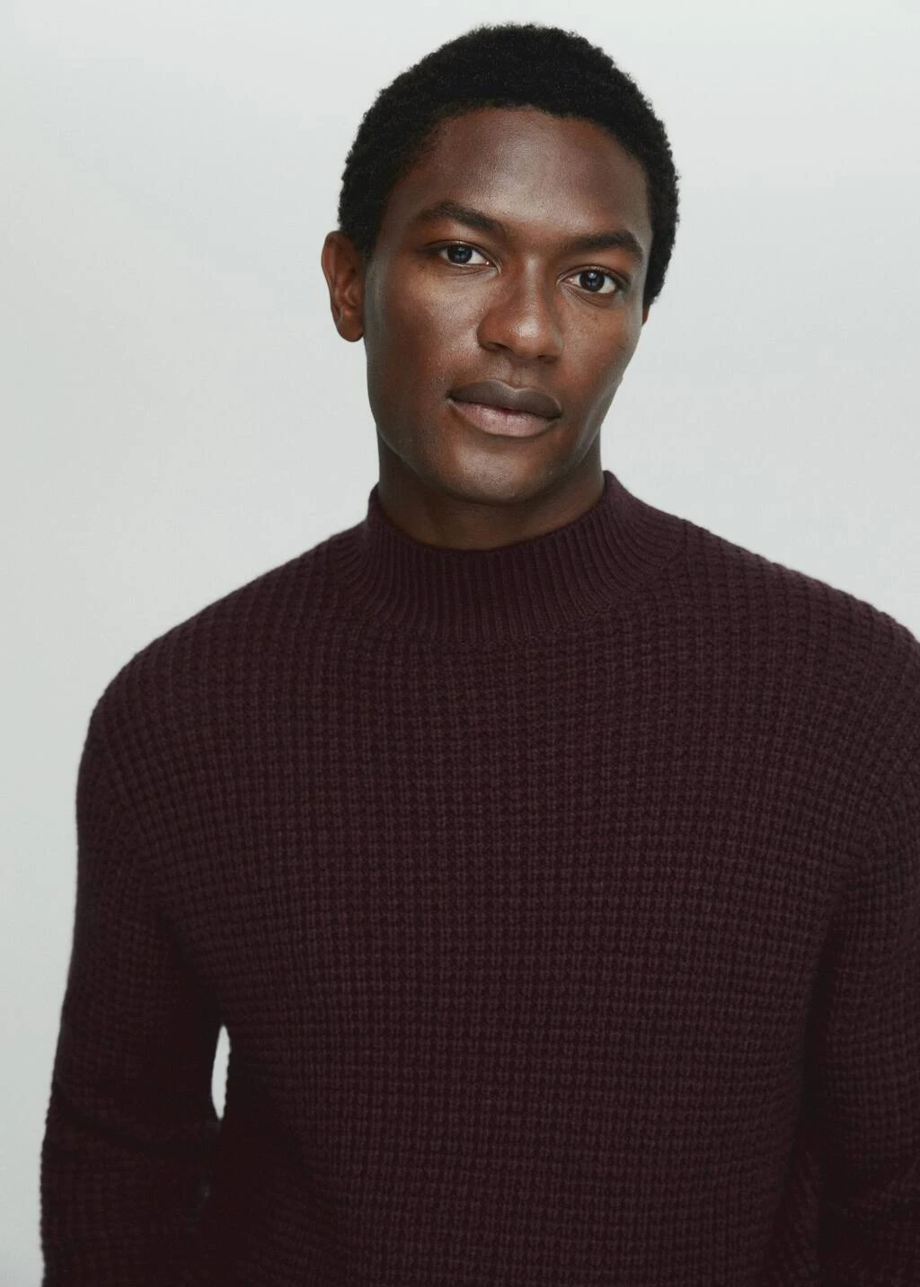 tissu melange laine et cachemire, tissu en grosse maille, regular-fit, col montant, manches longues avec poignets elastiques, bas droit, bords coteles au niveau du col, des manches et sur le bas, le mannequin mesure 190 cm et porte une taille mComposition: 55% polyamide,41% laine,4% cashmere
