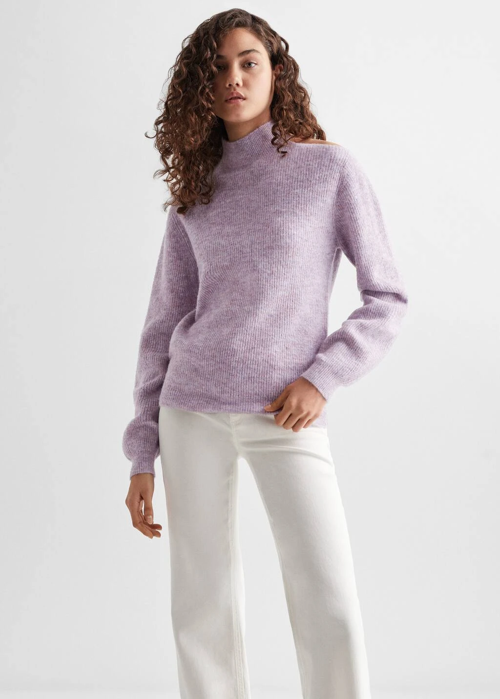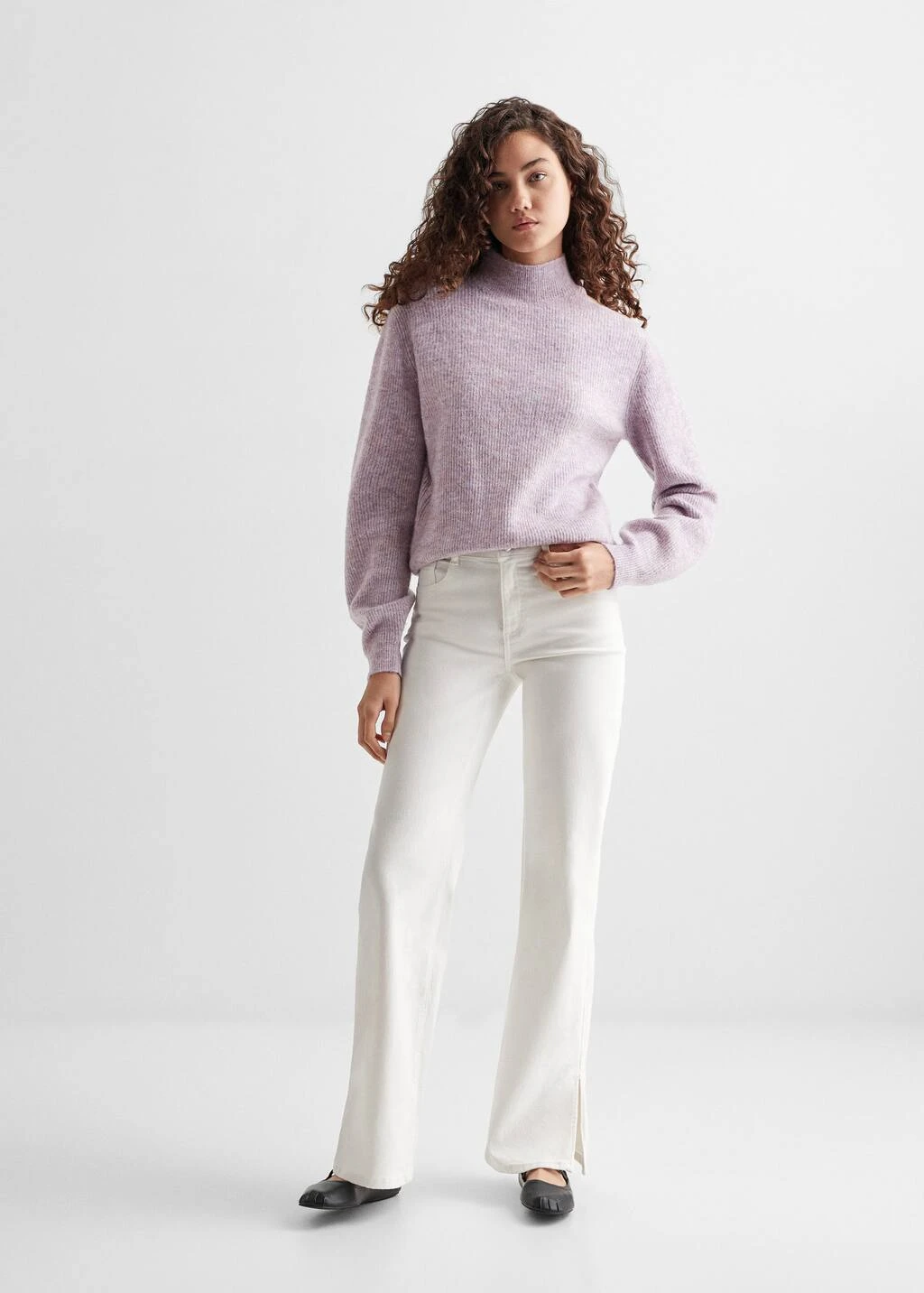 tissu en maille, maille moyenne, coupe droite, ouvertures sur l’epaule, col montant, manches longues, sans fermetureComposition: 54% polyester,38% acrylique,5% laine,3% elasthanne