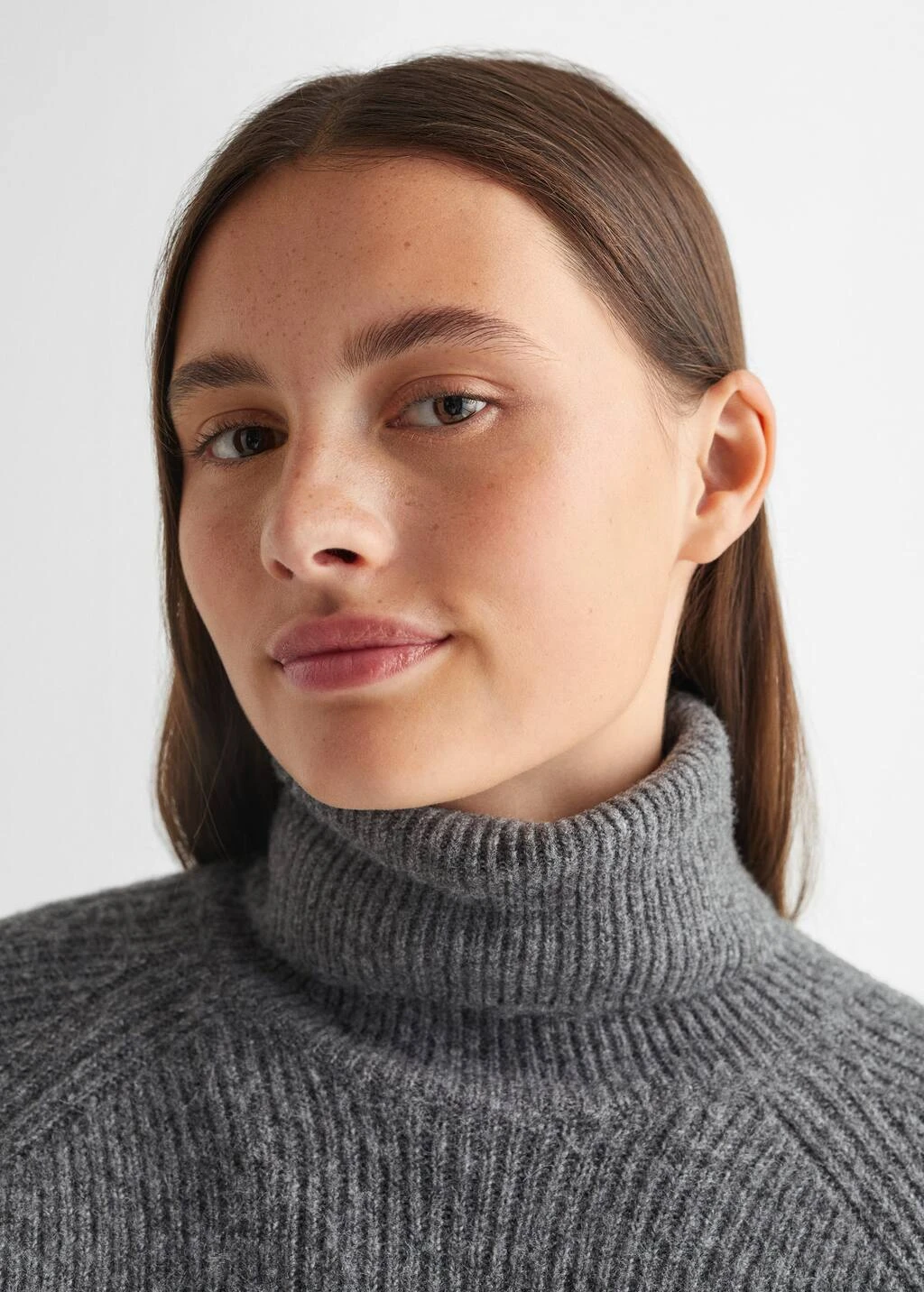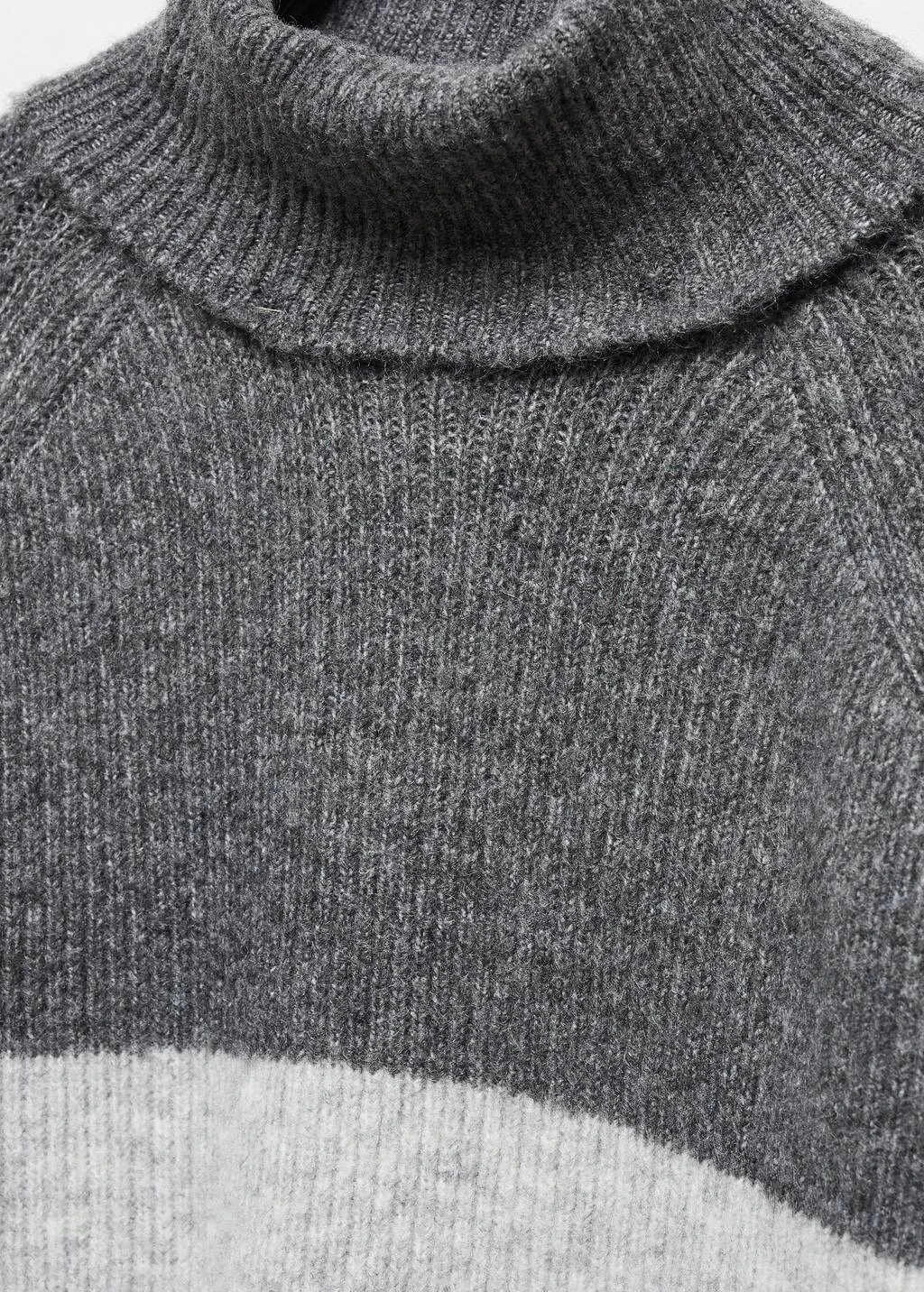 motif raye, coupe droite, col montant, col roule, manches longues, sans fermeture.Composition: 65% polyester,30% acrylique,3% laine,2% elasthanne