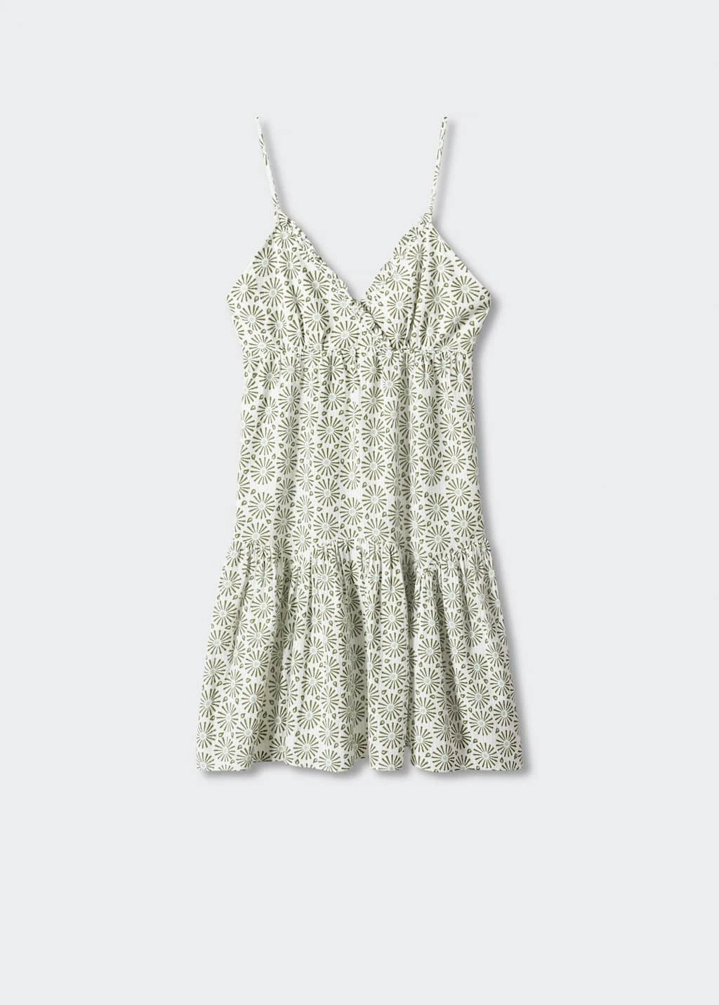 100 % coton, imprime, coupe courte, bretelles fines, base volantee, sans manches, col en vComposition: 100% coton