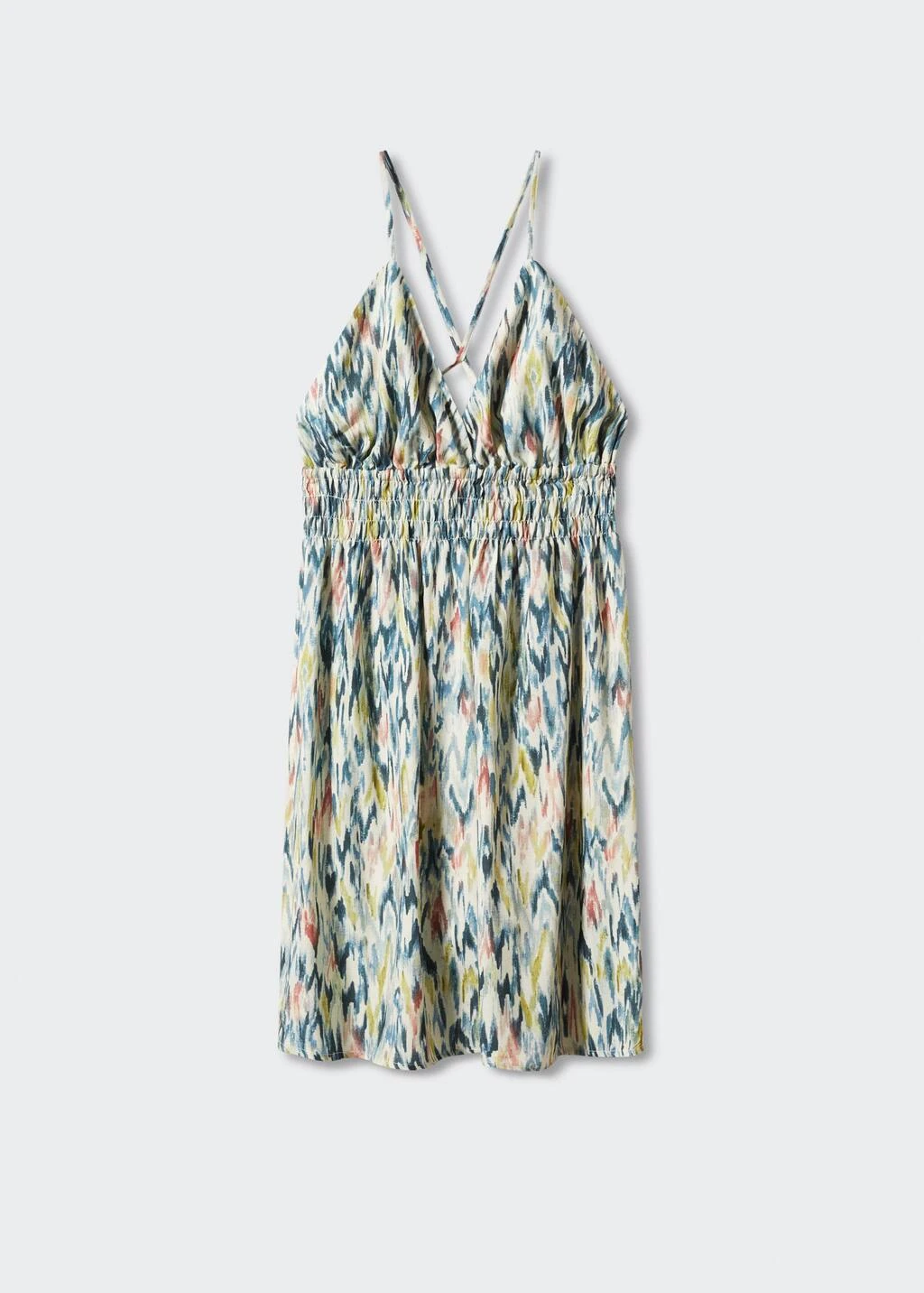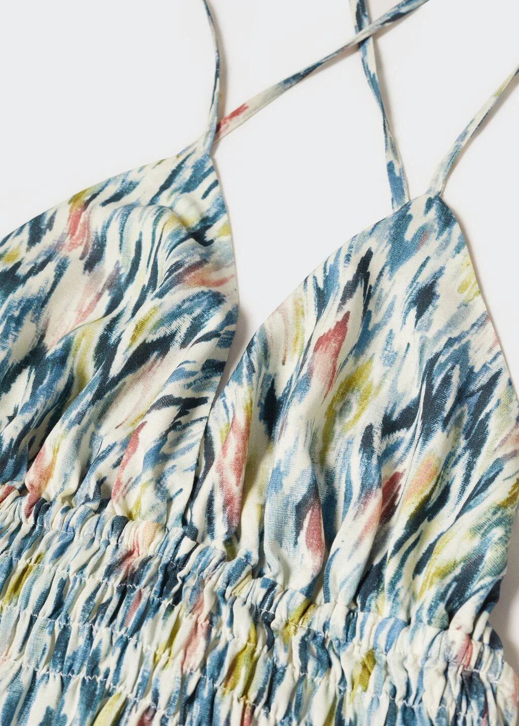 coupe courte, bretelles croisees, imprime, detail fronce, ouverture au dos, col en v, sans manches, fermeture a nœud reglableComposition: 100% viscose