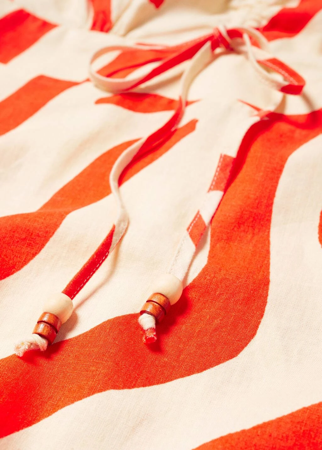 tissu en lin melange, coupe droite, coupe courte, imprime, col echancre, bretelles fines ajustables, detail fronce sur le col, nœud reglable, fermeture eclair a l’arriere, saison des festivalsComposition: 55% lin,45% viscose. Doublure: 100% coton