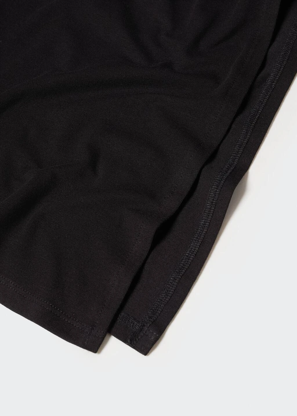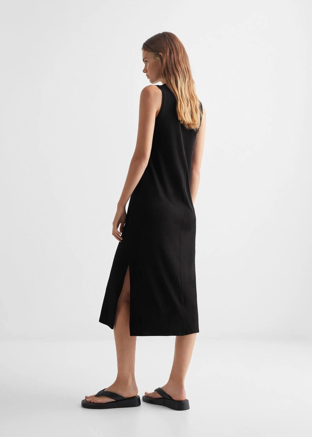 tissu en coton, coupe droite, coupe midi, fente laterale en bas, col rond, sans manches, le mannequin mesure 172 cm et porte une taille mComposition: 47% coton,47% modal,6% elasthanne