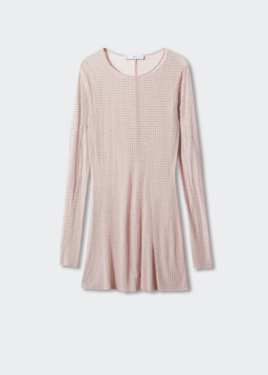 tissu en maille filet, ornement de cristaux, coupe cintree, coupe courte, col rond, manches longues, sans fermeture, collection fetes et ceremonies, saison des festivalsComposition: 94% polyester,6% elasthanne. Applique: 100% verre