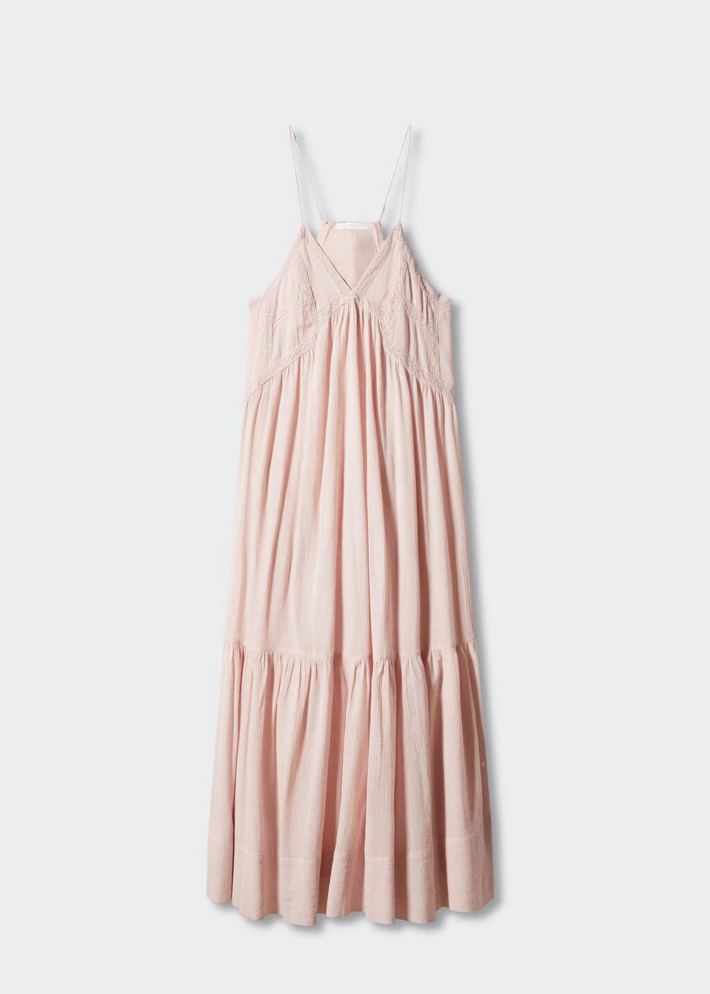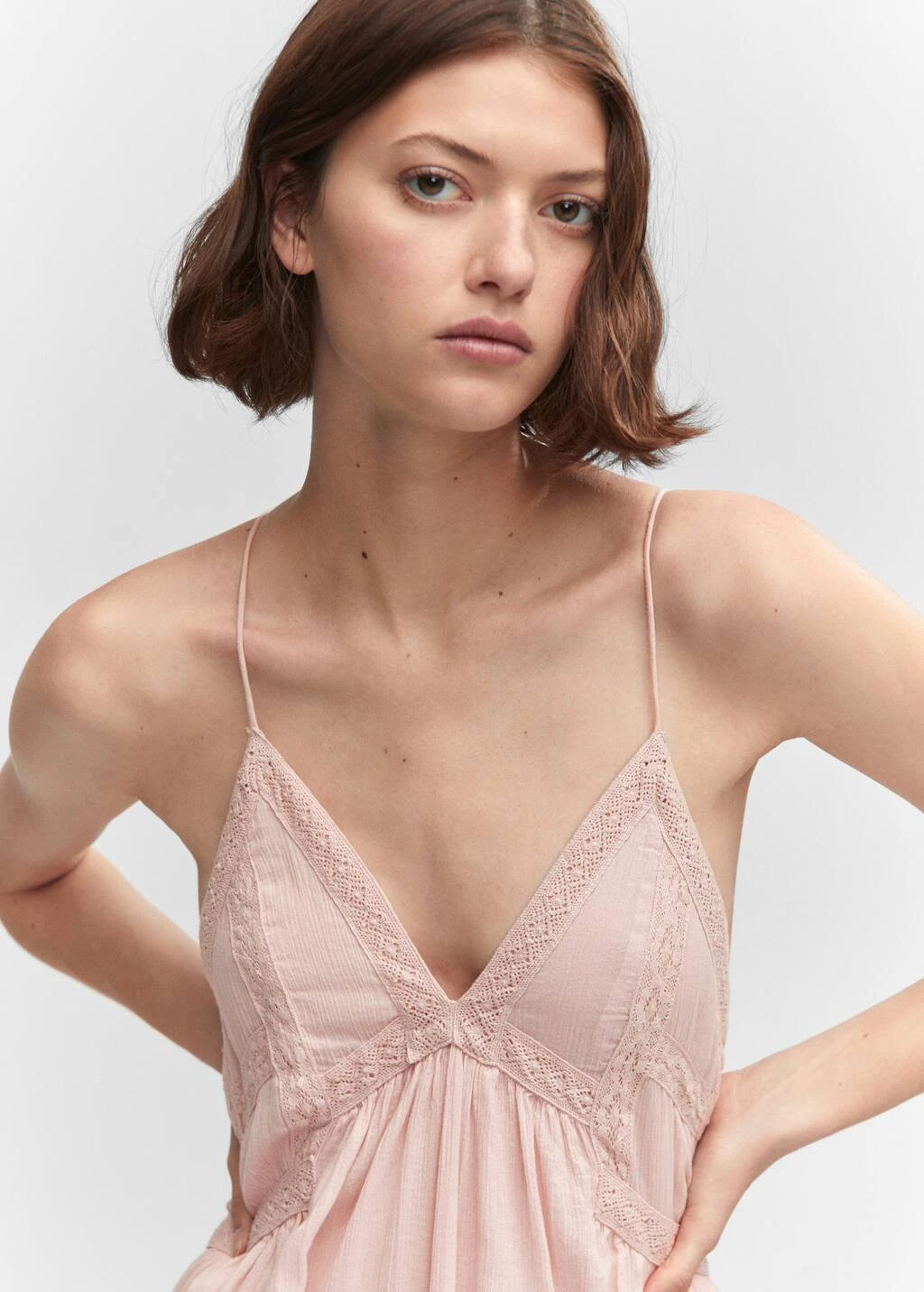 tissu 100 % coton, evase, style oversize, coupe maxi, col en v, bretelles fines ajustables, bas evase, details brodes, doublureComposition: 100% coton. Doublure: 100% coton. Ruban: 100% coton