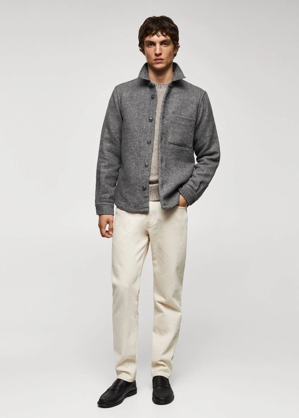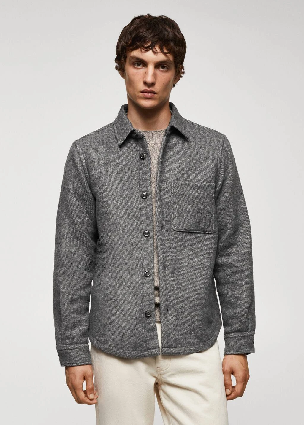 regular-fit, tissu de laine melange, tissu en flanelle, jaspe, col chemise, poche plaquee sur la poitrine, fermeture a boutons sur le devant, manches longues avec poignets boutonnes, bas arrondi, le mannequin mesure 190 cm et porte une taille mComposition: 53% polyester,41% laine,3% viscose,2% acrylique,1% polyamide