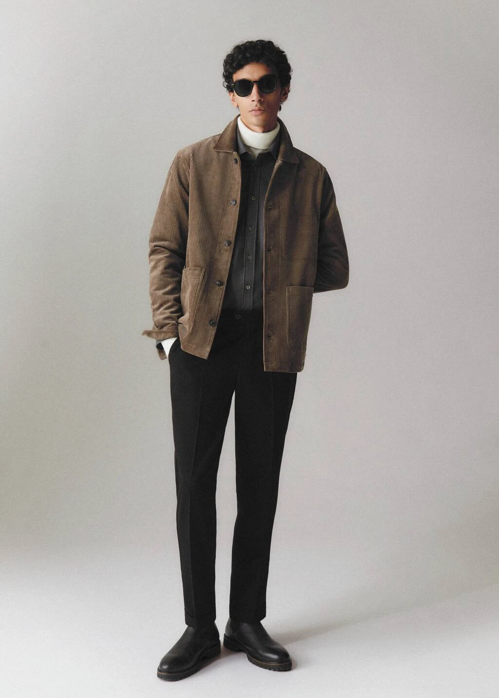 slim-fit, tissu en velours cotele, 100 % coton, col classique, fermeture a boutons sur le devant, poche plaquee sur la poitrine, deux poches plaquees sur le devant, manches longues avec poignets boutonnes, bas droit, le mannequin mesure 190 cm et porte une taille mComposition: 100% coton