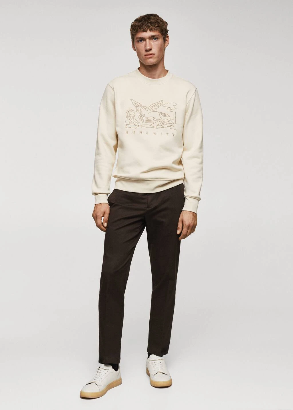 en collaboration avec l’artiste tiago majuelos, tissu de coton melange, slim-fit, motif brode sur la poitrine, col rond, manches longues avec poignets elastiques, bas droit, le mannequin mesure 190 cm et porte une taille mComposition: 66% coton,34% polyester