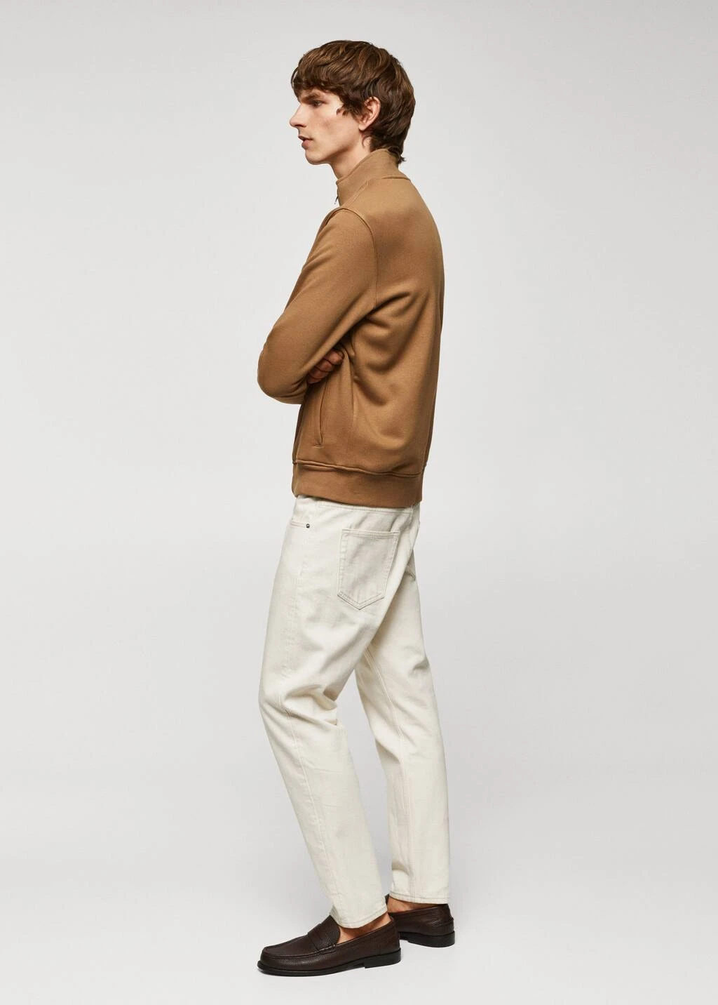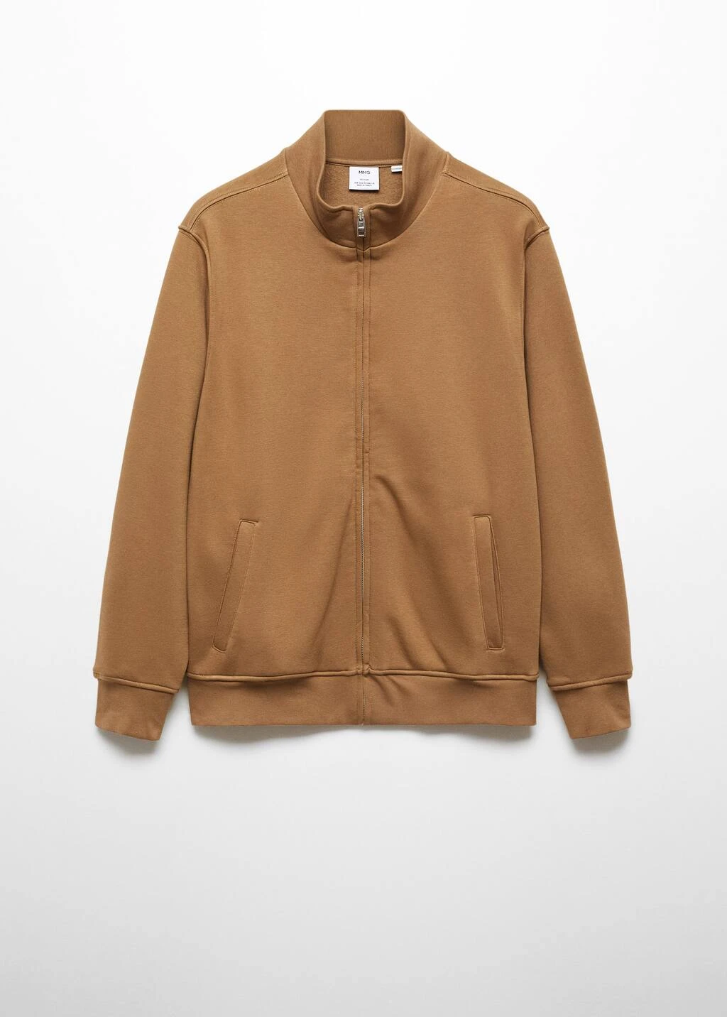 les essentiels : concus pour durer, tissu en coton melange, col montant a fermeture eclair, fermeture eclair a l’avant, manches longues avec poignets elastiques, interieur en coton gratte, bas elastique, le mannequin mesure 190 cm et porte une taille mComposition: 68% coton,32% polyester