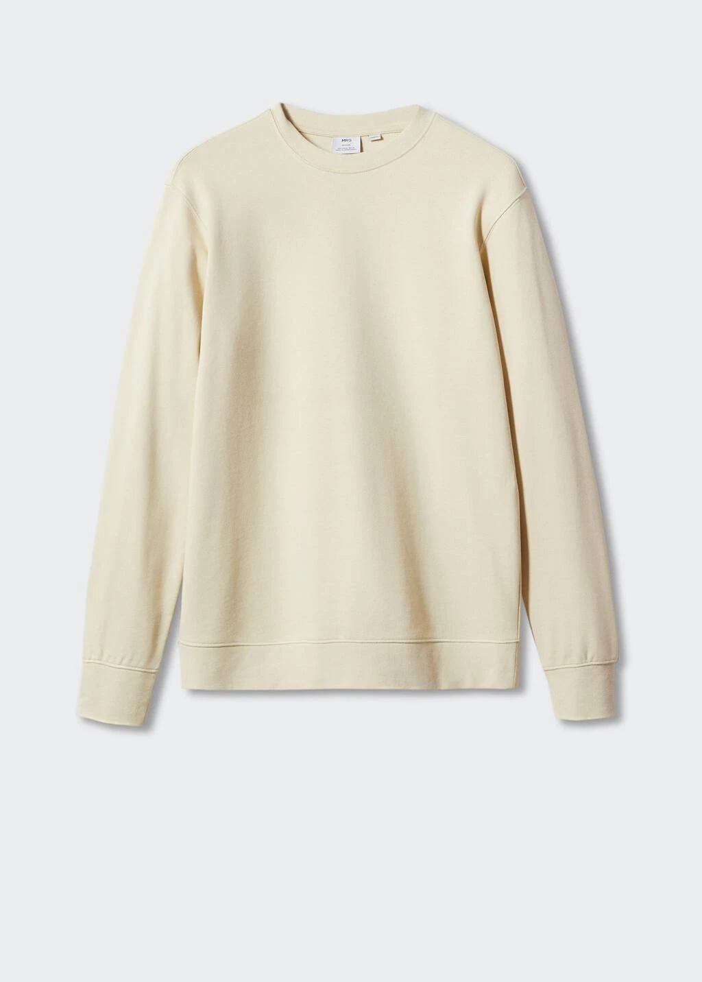 les essentiels : concus pour durer, tissu 100 % coton, tissu en coton durable, regular-fit, col rond, manches longues avec poignets elastiques, manches longues, bords coteles elastiques, bas elastique, le mannequin mesure 183 cm et porte une taille mComposition: 100% coton