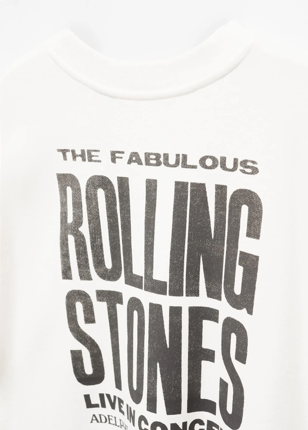 100 % coton, imprime the rolling stones, motif imprime au dos, coupe longue, style oversize, sans fermeture, col rond, manches longues, le mannequin mesure 172 cm et porte une taille mComposition: 100% coton