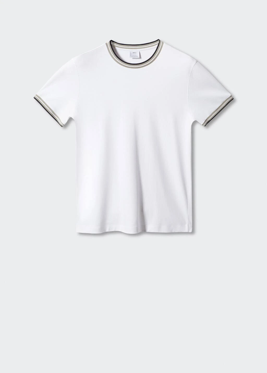 tissu 100 % coton, regular-fit, coupe standard, liseres contrastants sur le col et les extremites des manches, col rond, manches courtes, bas droit, le mannequin mesure 190 cm et porte une taille mComposition: 100% coton