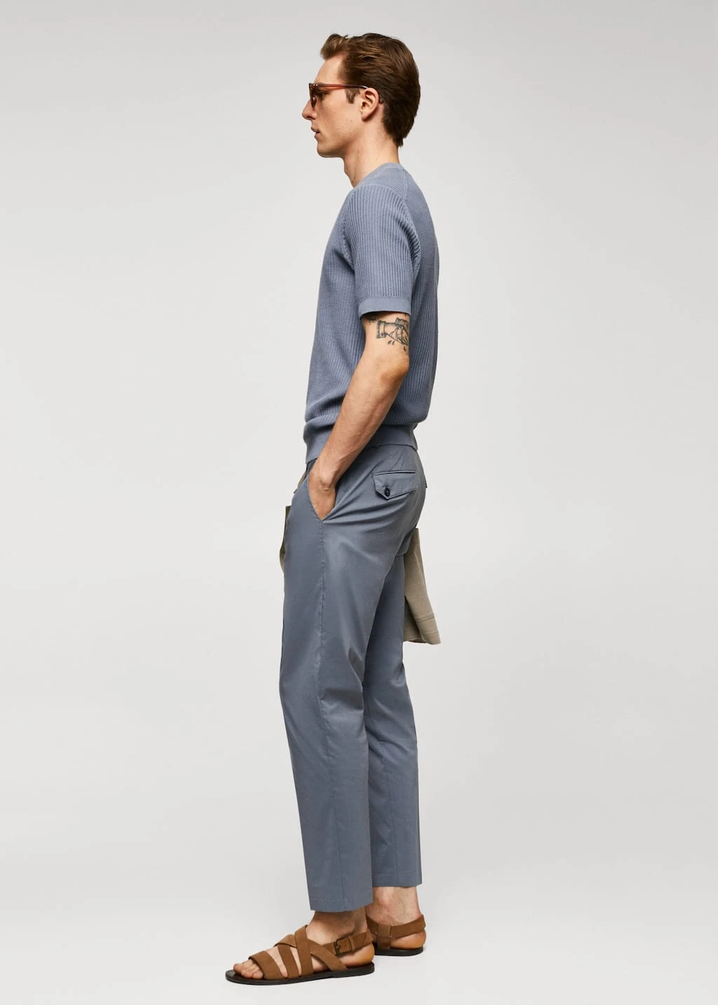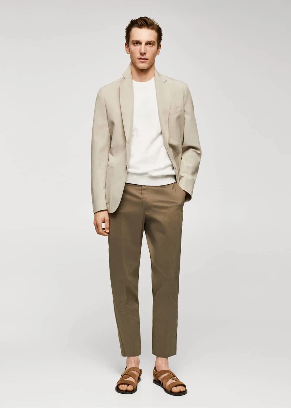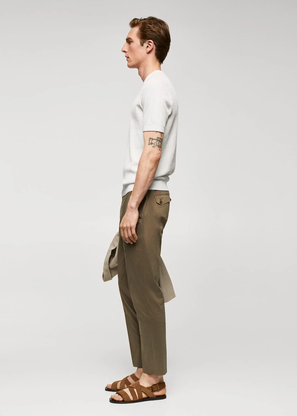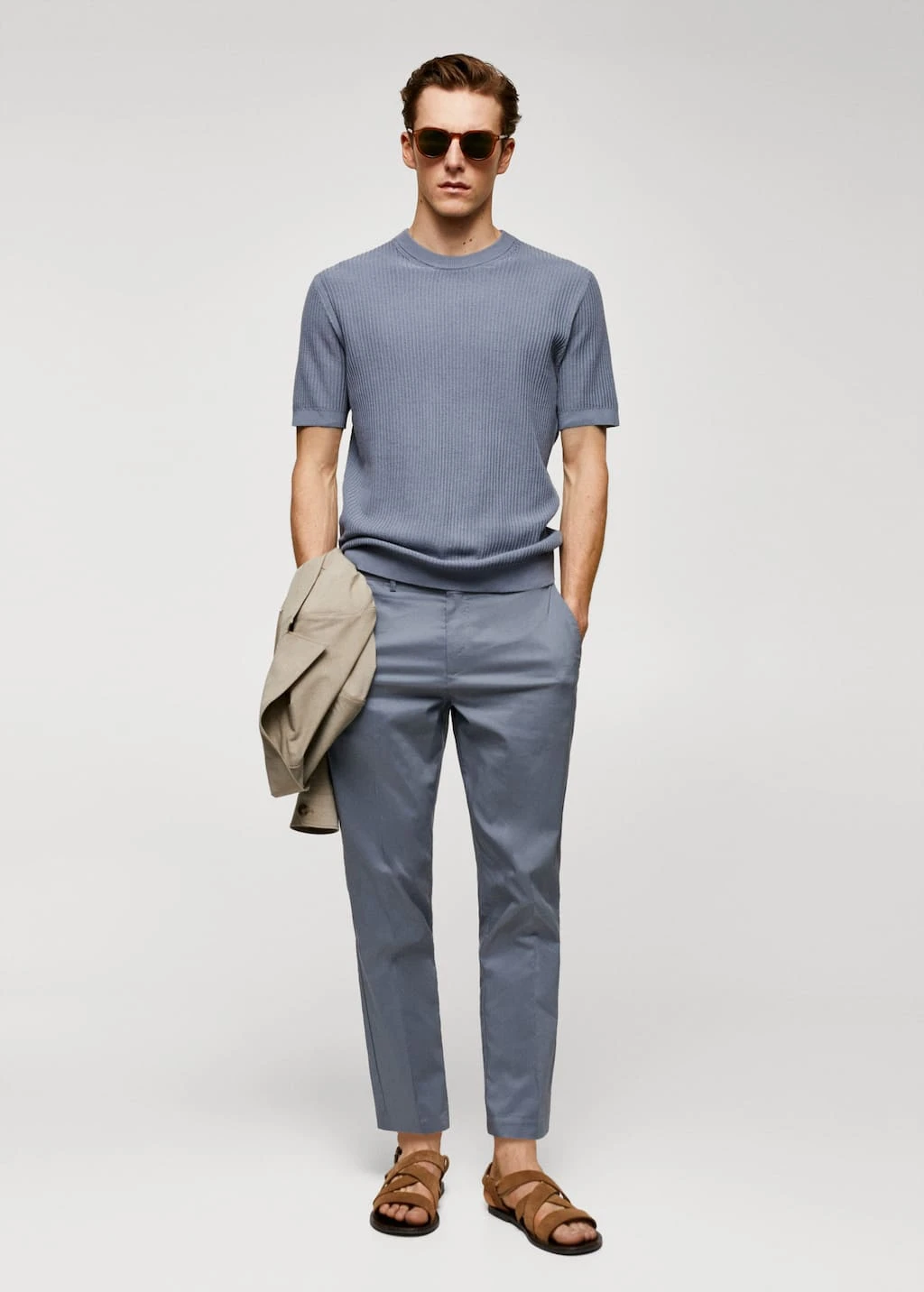 100 % coton, coupe droite, regular-fit, structure tressee en forme de maille cotelee, tissu en maille fine, col rond, manches courtes, bords coteles elastiques, le mannequin mesure 190 cm et porte une taille mComposition: 100% coton