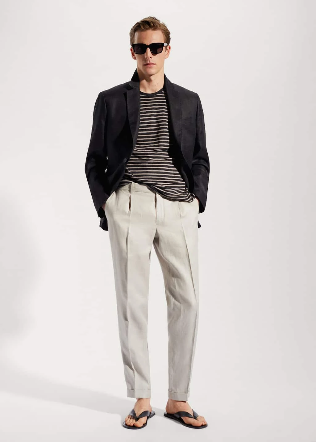 tissu en lin, slim-fit, coupe standard, tissu leger, imprime a rayures horizontales, col rond, manches courtes, bas droitComposition: 100% lin