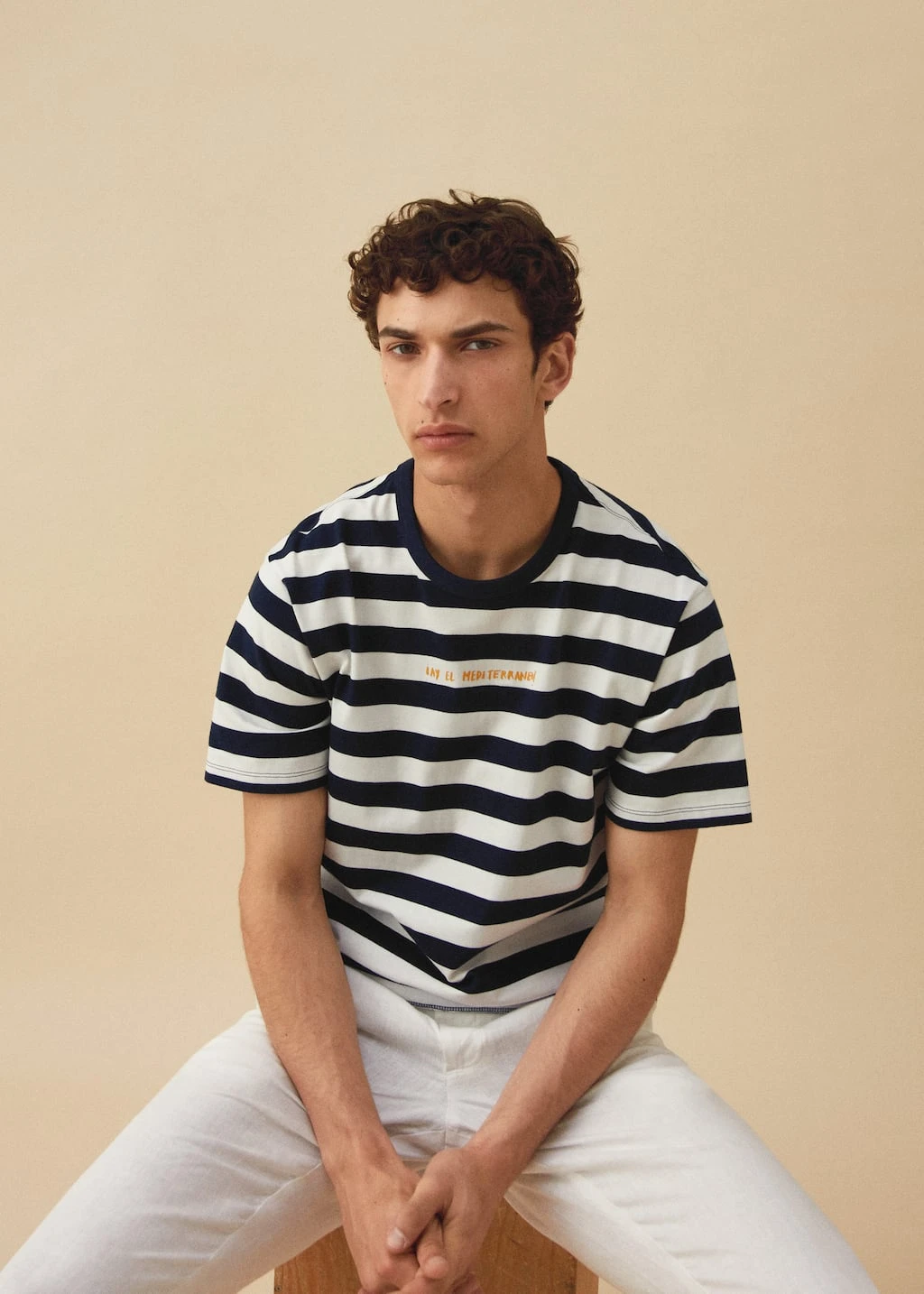 tissu 100 % coton, regular-fit, imprime a rayures horizontales, message imprime en relief sur la poitrine, manches courtes, bas droit, le mannequin mesure 190 cm et porte une taille m, en collaboration avec la photographe et artiste visuelle adriana eskenaziComposition: 100% coton. Cannelé: 95% coton,5% elasthanne